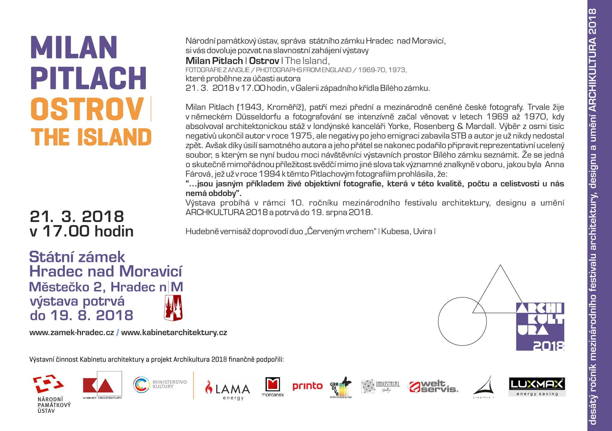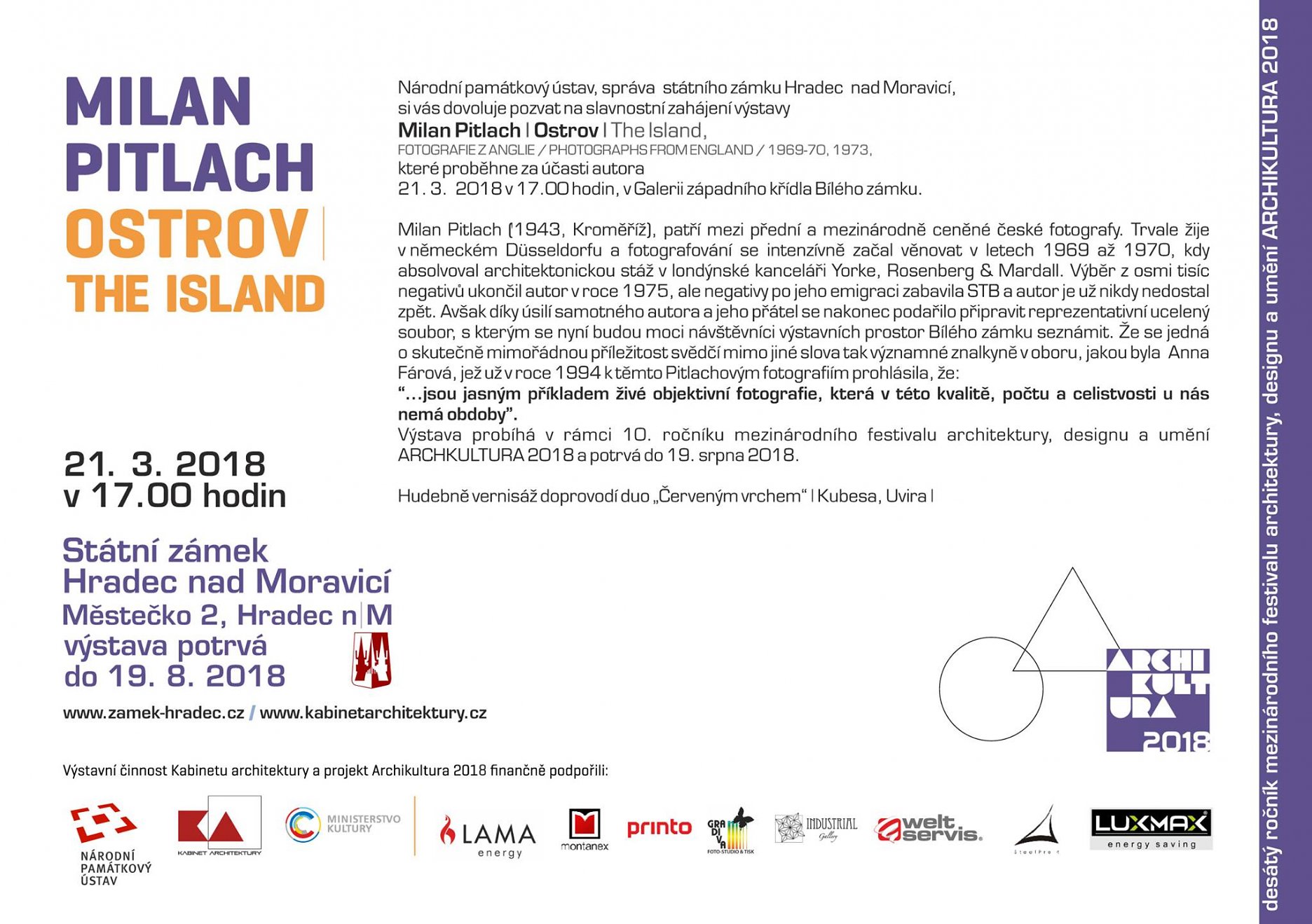 Národní památkový ústav, správa státního zámku Hradec nad Moravicí, si vás dovoluje pozvat na slavnostní zahájení výstavy Milan Pitlach / Ostrov/ The Island, FOTOGRAFIE Z ANGLIE / PHOTOGRAPHS FROM ENGLAND / 1969–70, 1973, které proběhne za účasti autora 21. 3. 2018 v 17.00 hodin, v Galerii západního křídla Bílého zámku.