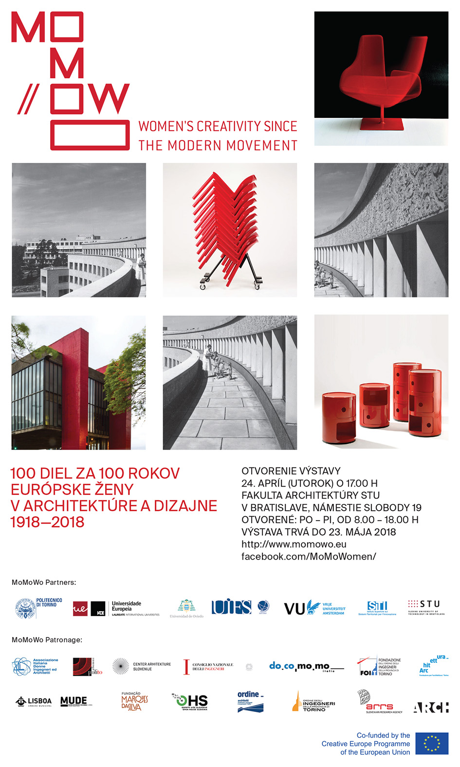 Výstavu tvorí interiérová a exteriérová časť. Interiérová časť pozostáva z interaktívnej digitálnej výstavy MoMoWo | 100 diel za 100 rokov. Európske ženy v architektúre a dizajne 1918 – 2018. Približuje nielen pôsobivú zbierku diel a ich autorky, ale aj interaktívny itinerár architektúry a dizajnu naprieč Európou, ktorý vytvoril medzinárodný tím MoMoWo s cieľom propagovať 125 vybraných diel, ktorých autorkami sú ženy. 100 rokov úspechu žien zobrazuje časová os, pod ktorou sú vyznačené spoločenské, politické, ekonomické a kultúrne míľniky, ktoré prispeli postupnému uznaniu žien v Európe, zatiaľ čo vrchná časť upozorňuje na konkrétne profesné úspechy. Exteriérová časť, ktorá bude vystavená prostredníctvom reklamných panelov „citylight“ na rôznych miestach Bratislavy, prezentuje víťazné reportážne fotografie Medzinárodnej fotografickej súťaže MoMoWo, zobrazujúce vlastné domovy dizajnérok a architektiek.