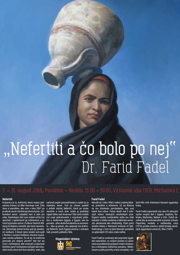 Krásavica je tu, kráľovná, ktorá svojou jedinečnou krásou už dlho fascinuje svet. Ešte dnes si pamätám, ako som v roku 2007 po prvýkrát zazrel v Berlíne jej slávnu bustu. „Dokonalosť sama,“ zašepkal som si sám pre seba. Nasledujúci deň som mohol určitý čas spočinúť v spoločnosti jej veličenstva a vytvoriť jej kresbu naživo. Profesor Dietrich Wildung mi láskavo vysvetlil, ako nové nasvietenie zdôrazňuje jemné krivky pod jej spodnými viečkami. O desať rokov neskôr som opäť v Berlíne s novými maľbami, ktorými rozprávam mnoho príbehov. Čo ak by mi kráľovná pózovala pre olejový portrét? Aký bol asi život v Achetatone, kde uctievali a oslavovali Božieho syna? Achnatona maľujem ako mocného kráľa, ktorý bol dosť odvážny nato, aby načúval svojim presvedčeniam a vydal sa za vlastným snom. Tiež sa chcem podeliť o príbeh staršej Nefertiti, ktorá po strate manžela a troch dcér zažila aj posledný západ slnka nad Amarnou! Táto séria malieb má svoje pokračovanie v rozprávaní príbehov o modernom Egypte, o Egypte, ako ho poznám. Jeho skutočná identita sa nezmenila... lebo aj potom, ako uplynula éra kráľovnej Nefertiti, duch Egypta prežíva v srdciach ľudí, pravých pokladov Nílu.