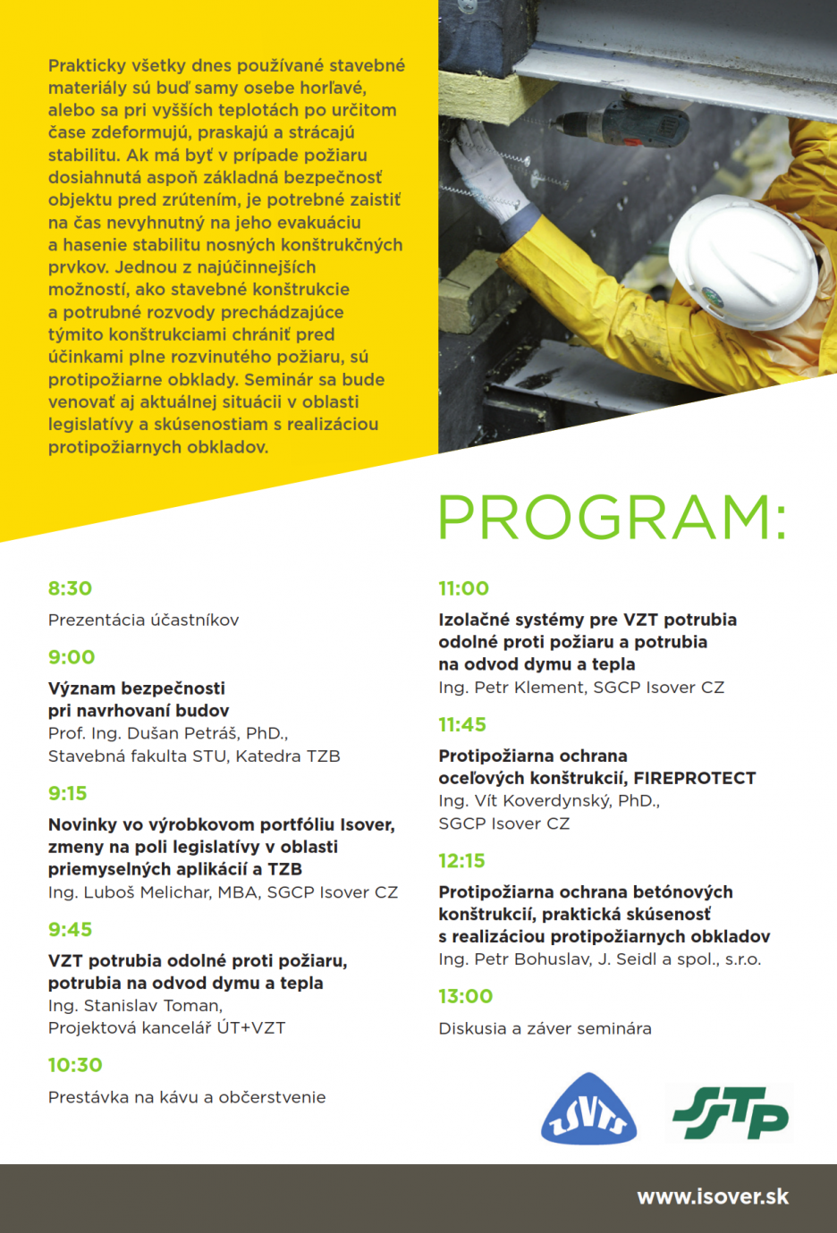 Registrácia účastníkov seminára je možná v termíne do 24/04/2017, registračný formulár najdete na www.isover.sk . Počet účastníkov seminára je obmedzený!