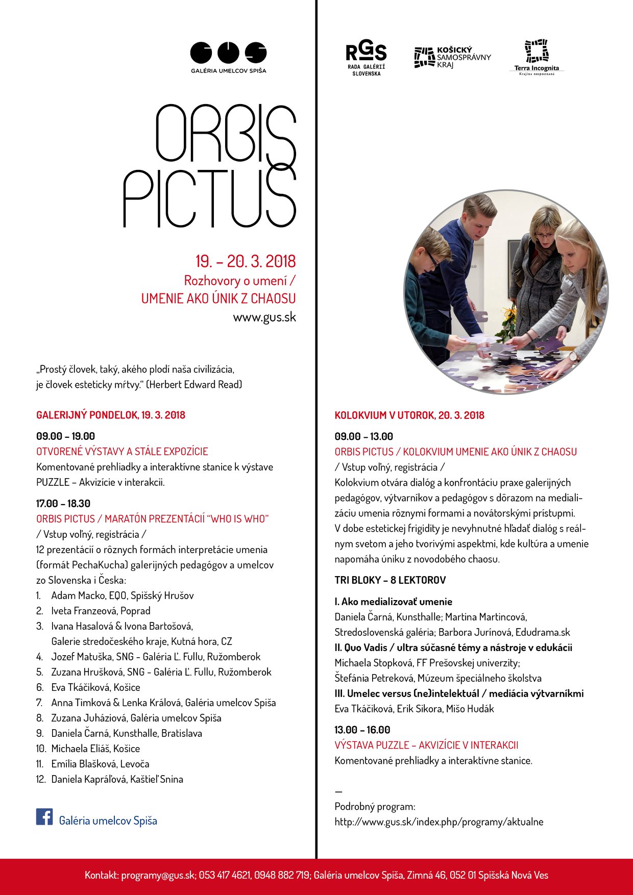 Profesijné stretnutie a odborné kolokvium UMENIE AKO ÚNIK Z CHAOSU, ktoré GUS organizuje v spolupráci s Radou galérií SR, je plne obsadené, záujem nás milo prekvapil, všetkým ďakujeme ! K dnešnému dňu máme prihlásených 65 účastníkov z Česka i Slovenska, 26 organizácií a to s prevahou SK a CZ galérií, ale aj múzeí, neziskových organizácií, individuálnych záujemcov a škôl.