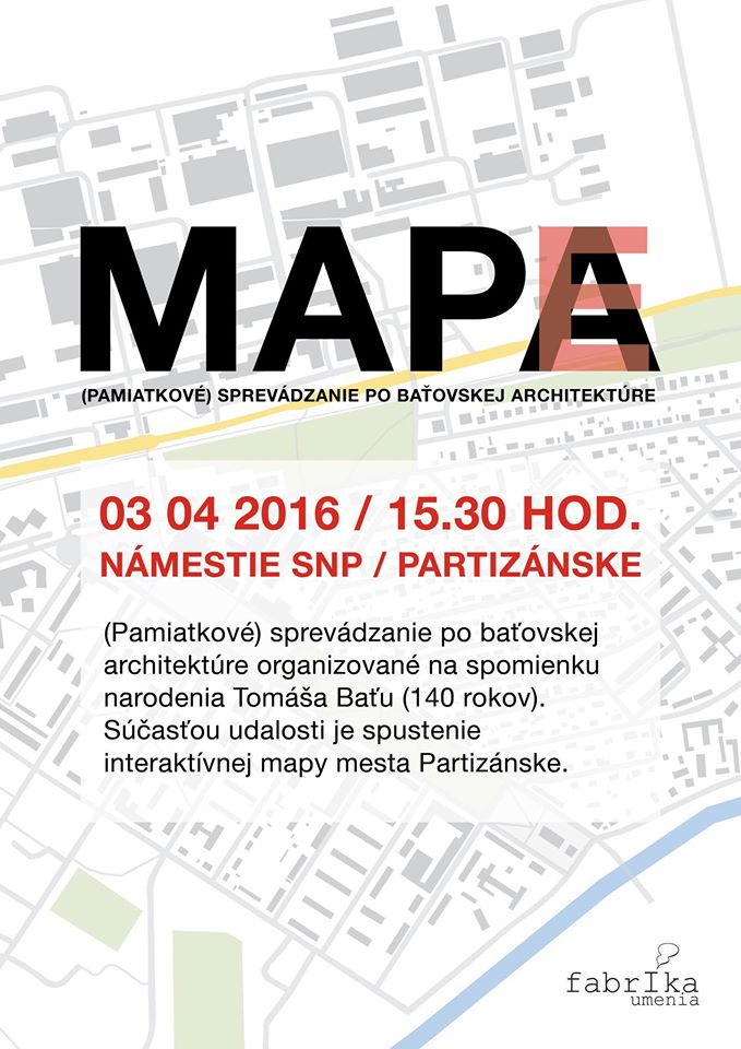 Na 140. výročie narodenia Tomáša Baťu, Vás prevedieme po baťovskom jadre mesta. Baťovany boli navrhnuté ako ideálne priemyslené mesto. Architektúra a urbanizmus tu má skutočnú hodnotu. Ukážeme Vám tieto vzácnosti a veríme, že tak získate nový pohľad na naše mesto. Súčasťou sprevádzania bude aj predstavenie virtuálnej edukačnej mapy baťovského funkcionalistického jadra mesta Partizánske.