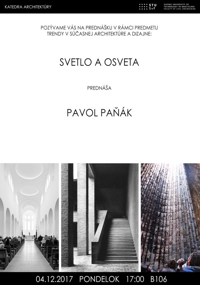 Naše pozvanie prijal hosť. prof. Ing. arch Pavol Paňák, ktorý okrem svojho chápania svetla ako témy v architektúre priblíži aj svoje impresie z tohoročného archtripu.