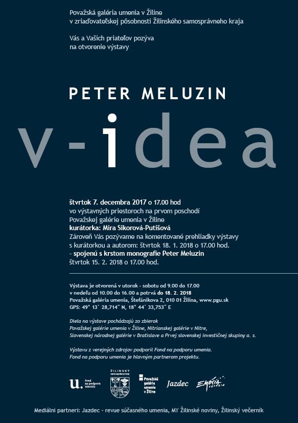 Peter Meluzin je považovaný za jednu z kľúčových osobností akčného umenia 80. rokov, no i umenia inštalácie a videoumenia 90. rokov. Výpravnosť a technická náročnosť jeho inštalácií a najmä videoinštalácií sa výrazne podpísala pod to, že ich približne dve desaťročia neprezentoval na samostatnej výstave väčšieho formátu. Môže sa tak zdať, že komplexnejšie uchopená prezentácia jeho videotvorby nachádza mimo záujem zbierkotvorných galérií. I z tohto dôvodu sa PGU rozhodla pripomenúť jeho dôležité, pre slovenské umenia po roku 1990 dokonca totemické, videoinštalácie. Výstava je sprítomnením toho, čo z nich po intenzívnom tvorivom programe autora zostalo v podobe zbierkových predmetov vo fondoch iba malého množstva inštitúcií, ale zároveň prináša tzv. „remaky“ jeho videoinštalácií, ktoré sa nezachovali a PGU ich opätovne zrekonštruovala. Desať videodiel autora na výstave v PGU je na jednej strane akoby „rešeršom“ z jeho obsiahlej videotvorby s ťažiskom v 90. rokoch, no súčasne sa prostredníctvom nich predstavujú jej dôležité koncepcie. Novšími dielami z posledného desaťročia zároveň ponúka pohľad i na kontinuitu tvorby umelca.