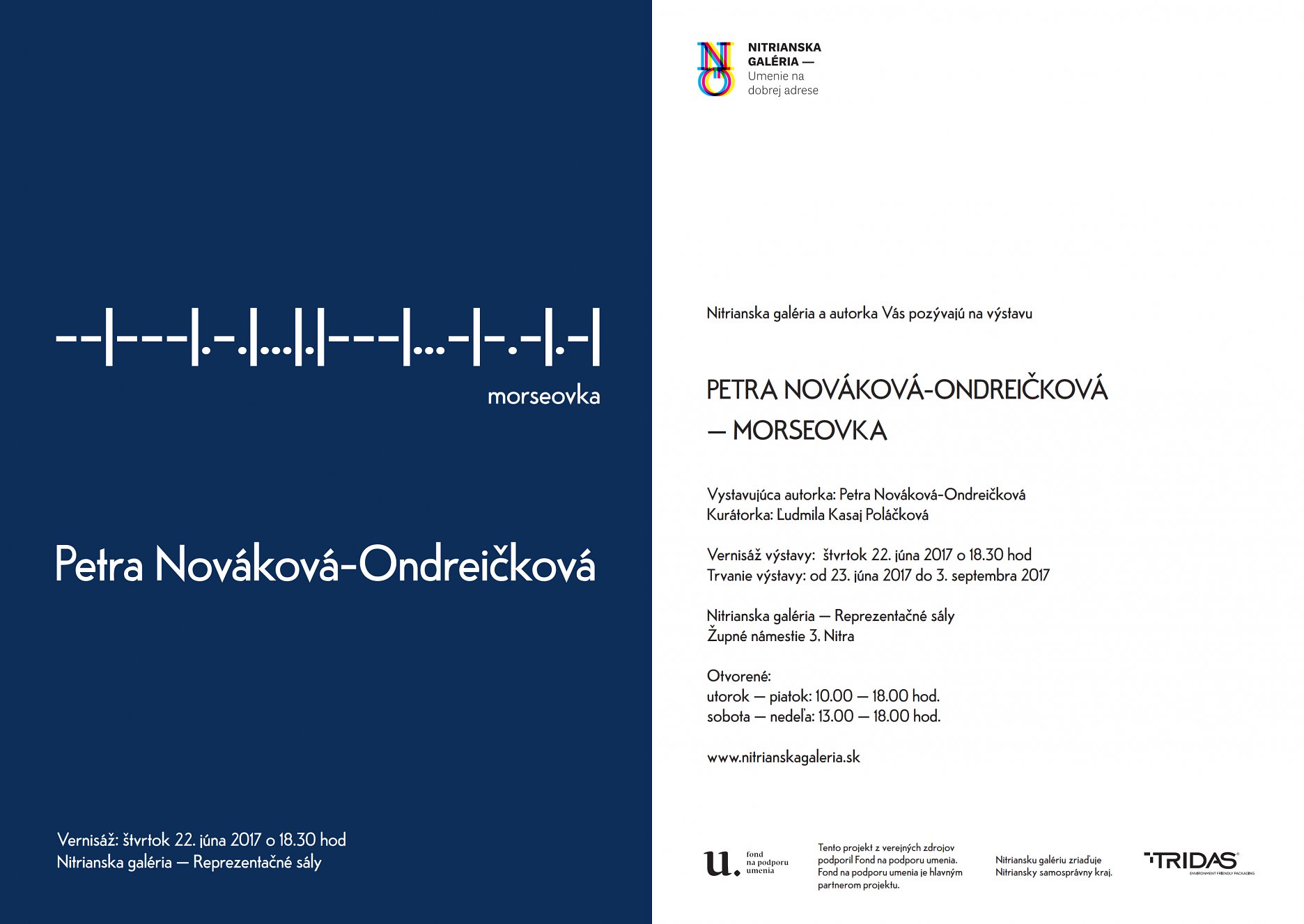 Projekt Morseovka je doteraz najrozsiahlejšou autorskou prezentáciou Petry Novákovej-Ondreičkovej (1968) na Slovensku. Umelkyňa kódmi – signálmi Morseovej abecedy reflektuje pocit jedinca z urbanizmu miesta, jeho štruktúry. Ťažiskom je citlivé narábanie s rôznymi materiálmi (najmä však s papierom), ich eklektická mixáž, recyklácia. Vizuálny jazykom spracováva svoje myšlienky z architektúry najmä prostredníctvom papiera. Gesto zanechania stopy v materiáli papiera nám naznačuje „to prázdno“ v hmote (mesta, človeka). Morzeovka je v tomto zmysle chápaná aj ako pocit z tmavého mesta, ktoré v diaľke svetielkuje (bodkuje, čiarkuje) a vysiela nám svoje signály o samote a osamotení v priestore mraveniska mesta, ktoré občas každý jedinec v živote zažije. Priestorové abstrakcie, ale aj olejomaľby vytvárajúce dojem krajiny sú vizualizované výtvarné pocity ľudského bytia. Autorka vytvára diela v cykloch, v ktorých sa vyjadruje ku krajine. Veľký priestor pohlcuje limitovaný rozmer zvoleného materiálu. Za zmienku stojí aj veľmi dôležitý moment – proces „autorecyklácie“ vlastných diel. Cirkulácia tvorby – vzniknutý odpad z papiera pri rezaní/kreslení nožom (vy)užíva v iných inštaláciách či kolážach, čím má tvorba veľmi efemérny výraz s prívlastkom hand-made.