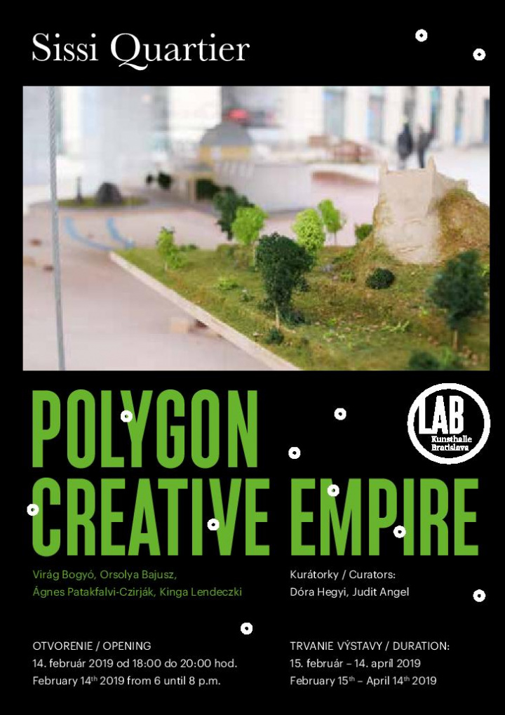 Autorky Virág Bogyó, Orsolya Bajusz, Ágnes Patakfalvi-Czirják a Kinga Lendeczki tvoriace pod názvom Polygon Creative Empire prezentujú v priestoroch Kunsthalle LAB svoj návrh fiktívneho investičného „megaprojektu“ Sissi Quartier. Pri jeho koncipovaní nasledovali logiku a stratégie veľkých spoločností, ktoré sa na základe subjektívneho rozhodnutia a požiadaviek neustále sa rozvíjajúceho kapitalizmu snažia umelo vytvoriť a vybudovať nový „región“. Takéto územie má bez ohľadu na miestnu kultúru, históriu alebo tradície v prvom rade slúžiť na generovanie ďalšieho zisku smerujúceho naspäť do vreciek investorov. Autorky skúmajú, ako v súčasnosti vstupuje kapitál do transformácie geografických priestorov a aké ekonomické mechanizmy či sociálno-kultúrne elementy sú potrebné na vznik týchto „ne-historických“ oblastí. Koncepcia Sissi Quartier taktiež reflektuje všadeprítomnú nevyhnutnosť budovania značky, pre ktorú sa miestne historické zdroje využívajú len ako efektné dekorácie, čo síce danú zónu zatraktívnia pre ďalšie potenciálne investície, no od skutočnej, zažitej skúsenosti lokálneho obyvateľstva sú veľmi vzdialené.