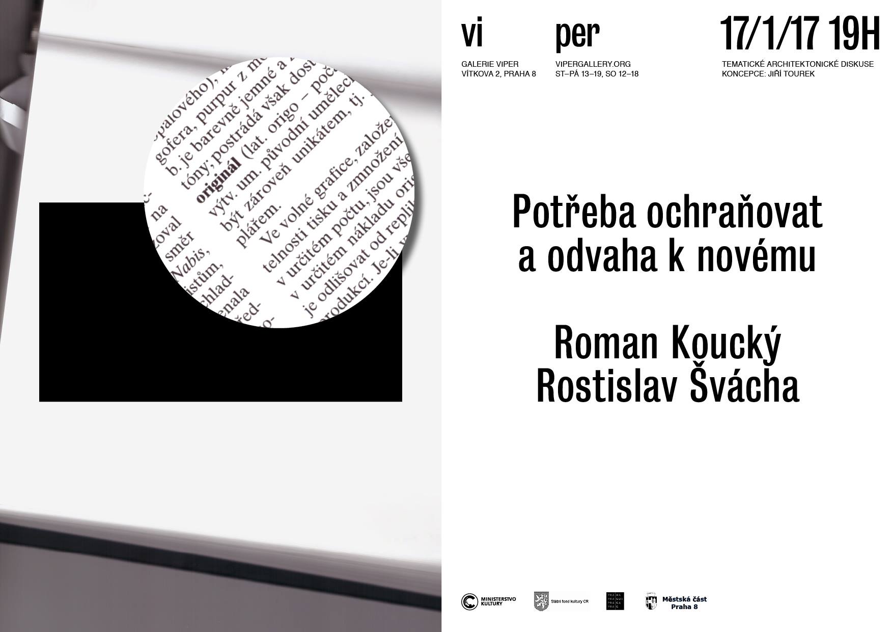 První diskuse proběhne 17. ledna 2017 v 19 hodin na téma Potřeba ochraňovat a odvaha k novému