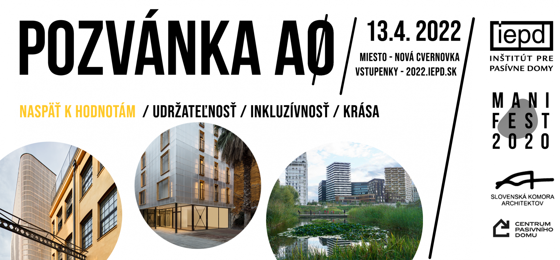 Organizujú ju Inštitút pre pasívne domy, Manifest 2020 a Slovenská komora architektov. Jedná sa o IV. ročník konferencie, ktorá sa zaoberá vplyvom architektúry na životné prostredie a klimatickú krízu. Motívom tohto ročníka je NASPÄŤ K HODNOTÁM.
