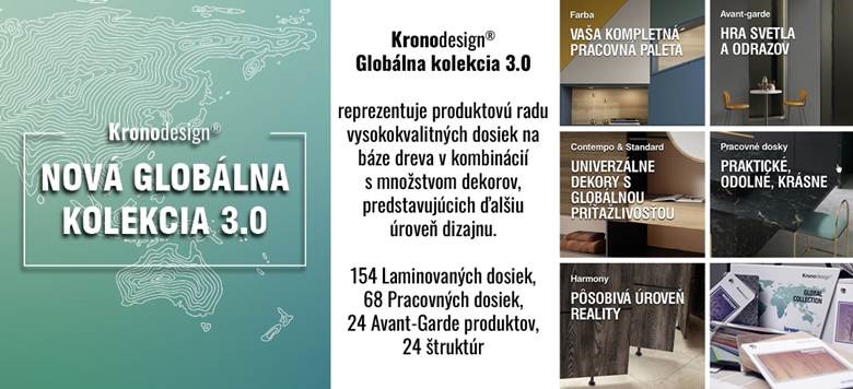 Spoločnosť Kronospan Vás pozýva na uvedenie novej Kronodesign® Globálnej kolekcie 3.0.