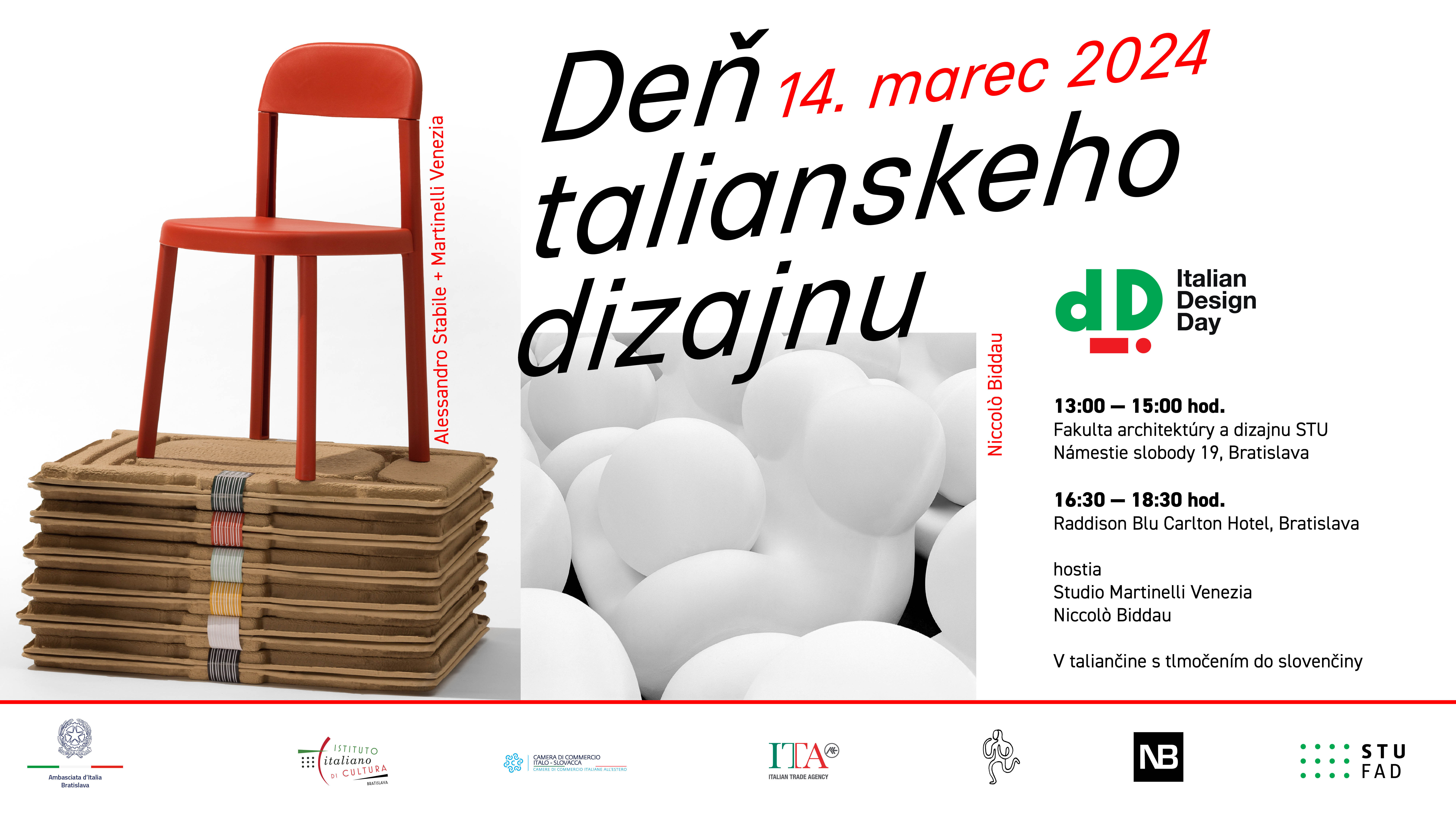V rámci 8. ročníka Dňa talianskeho dizajnu vo svete pripravilo Talianske veľvyslanectvo, Taliansky kultúrny inštitút v Bratislave a Fakulta architektúry a dizajnu STU v Bratislave mimoriadnu prezentáciu špičkového talianskeho dizajnového štúdia Martinelli Venezia a jedného z najuznávanejších fotografov industriálnej architektúry Nicccola Bidddaua.