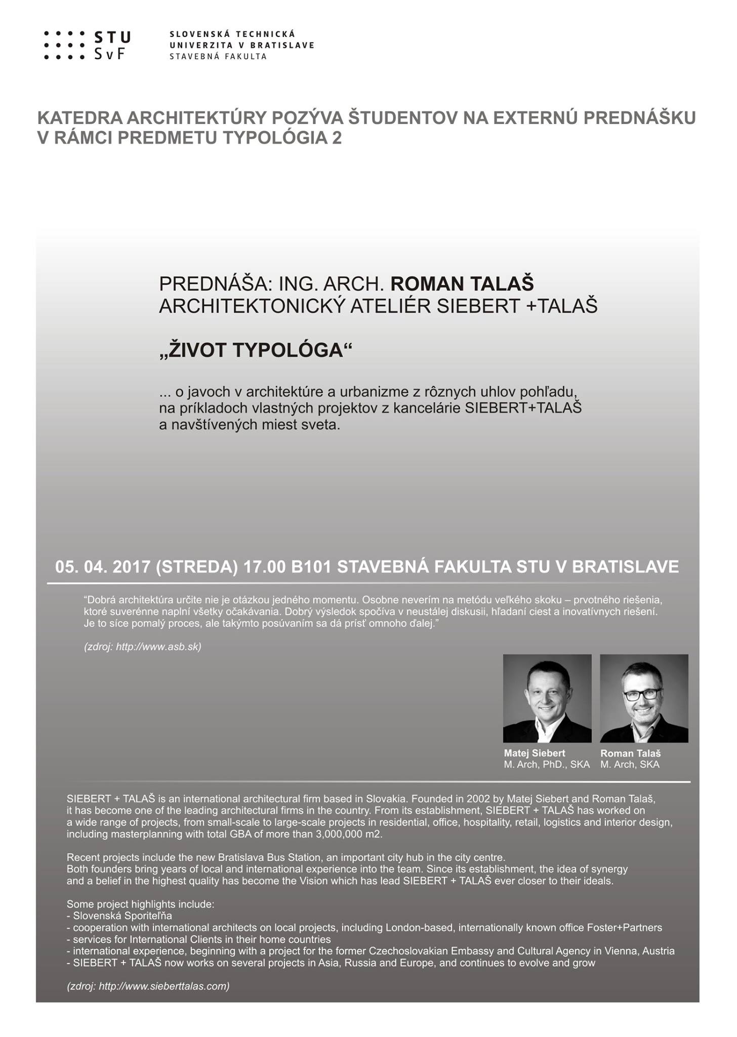 05. 04. 2017 (STREDA) 17.00 B101 STAVEBNÁ FAKULTA STU V BRATISLAVE