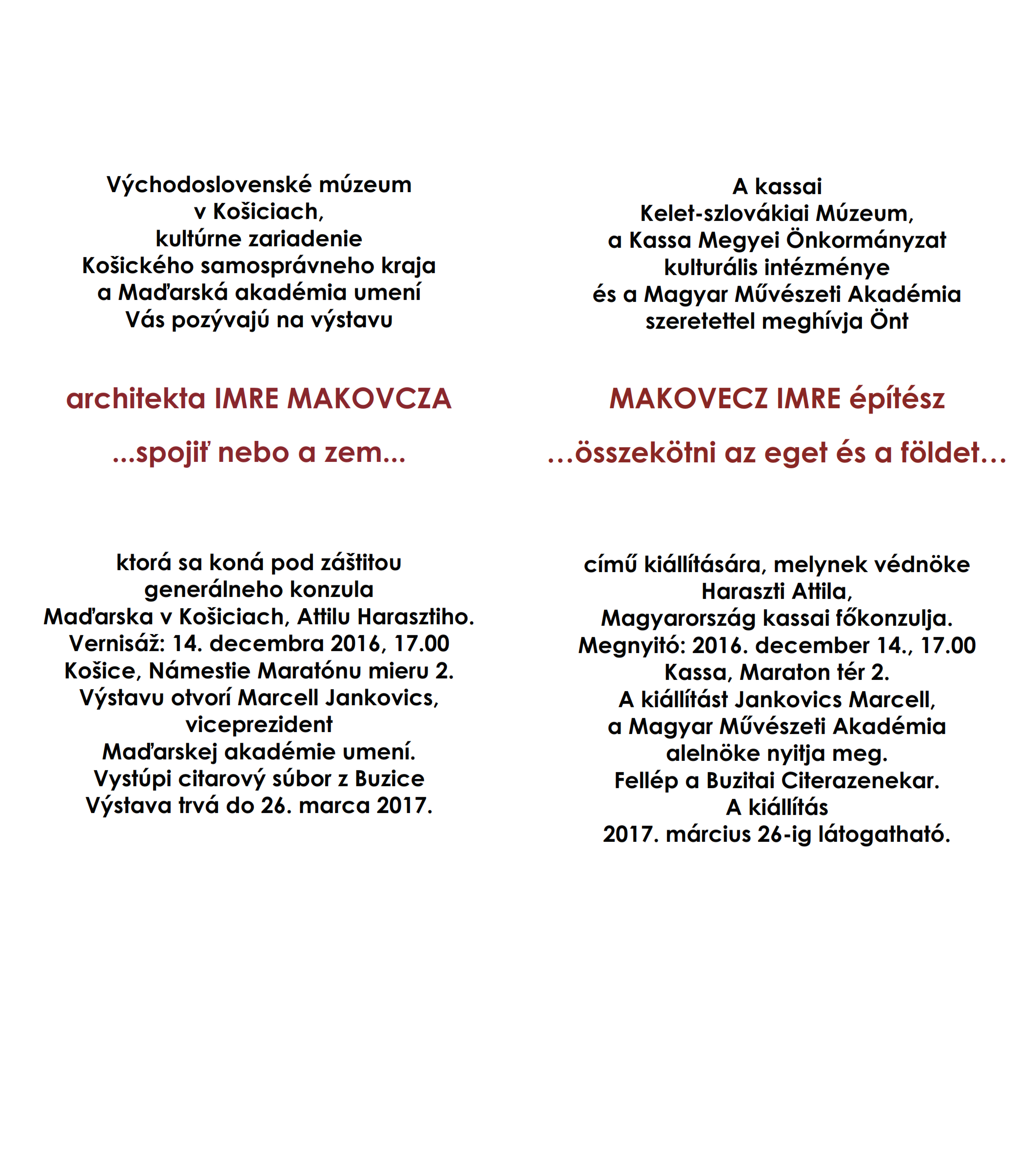 Výstavu bude sprevádzať veľmi obsažný trojjazyčný anglicko-slovensko-maďarský katalóg. Výstava potrvá do 26. marca 2017.