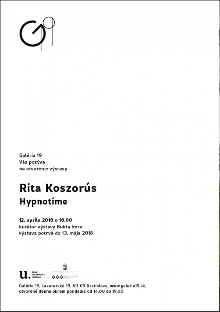 Rita Koszorús bude vystavovať najnovšiu sériu svojich abstraktných malieb, ktorou sa zamýšľa nad plynutím času. Vernisáž sa v známej bratislavskej Galérii 19 uskutoční vo štvrtok 12. apríla 2018 o 18.00 hod. Kurátorom výstavy je jeden z najvýznamnejších maďarských výtvarníkov Imre Bukta, profesor na Univerzite výtvarných umení v Budapešti. Podľa neho pracuje mladá autorka s vedomou metódou tvorby obrazu, ktorú nazval „múdrou maľbou“. Výstava potrvá do 13. mája 2018.