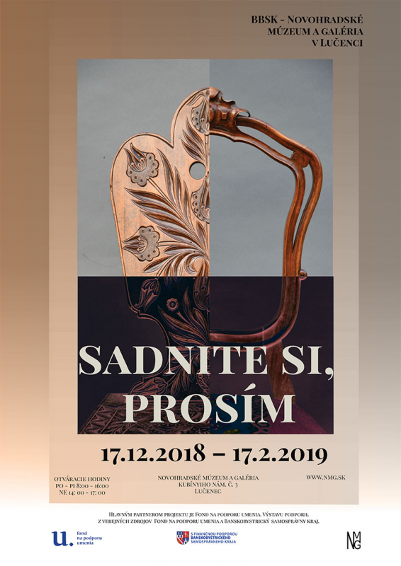 Výstava Sadnite si, prosím predstavuje jednotlivé typy sedacieho nábytku, ktoré plnili vo vidieckom prostredí hlavne praktickú funkciu, prechod od čisto praktických stoličiek cez drevené kreslá, používané v meštianskych domácnostiach až po luxusné historizujúce pohovky a kreslá pochádzajúce z interiérov lučenských živnostníkov, remeselníkov či vyššej spoločnosti.