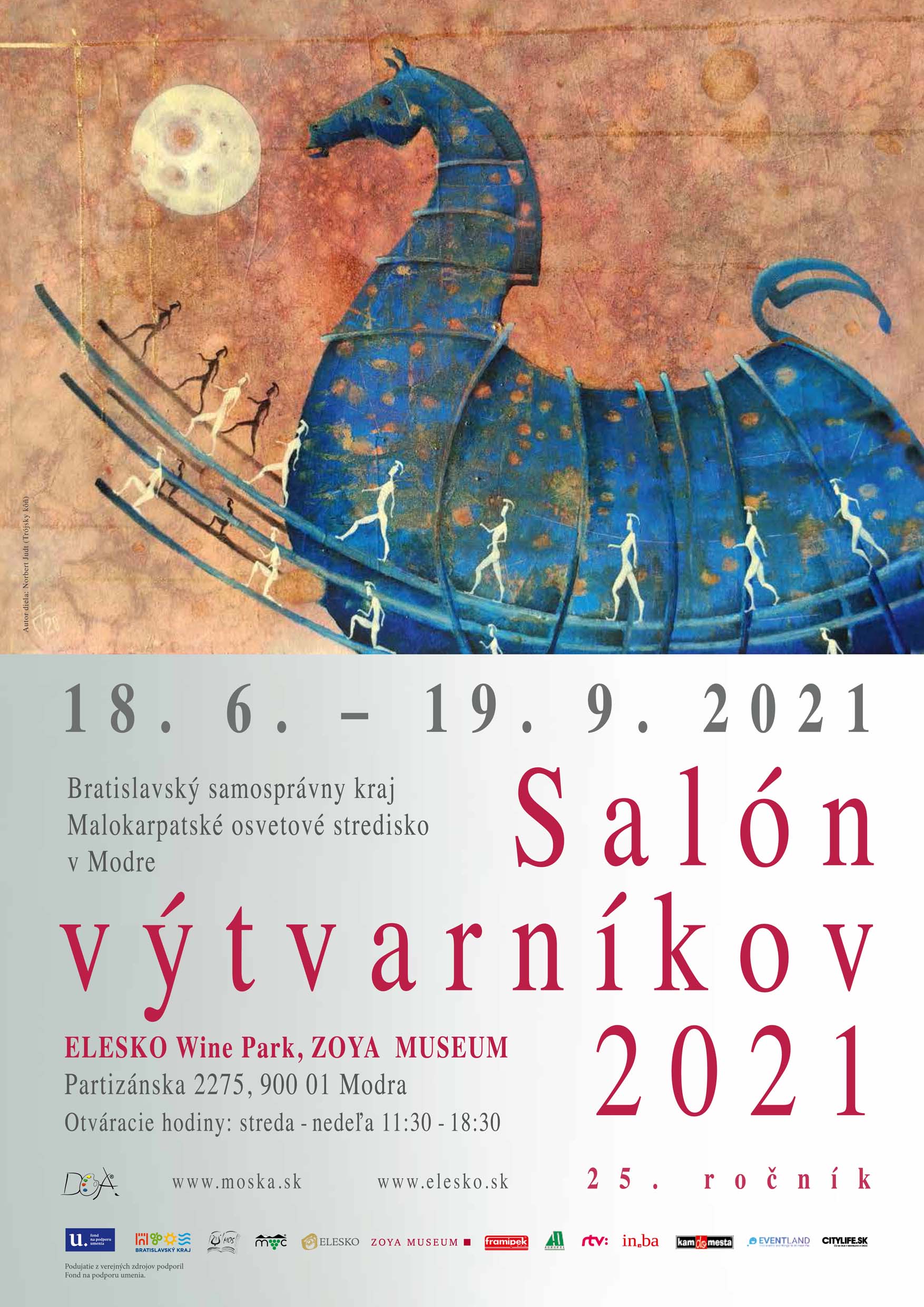 Salón výtvarníkov sa opätovne zaskvie ako mimoriadna kultúrno-umelecká príležitosť pre výtvarníkov spod Malých Karpát, Bratislavy a z Bratislavského kraja, kde môžu prezentovať svoju tvorbu v rámci kolektívnej výstavy v moderných priestoroch galérie Zoya Museum – ELESKO Wine Park v Modre. Organizátorom podujatia je Malokarpatské osvetové stredisko v Modre v zriaďovateľskej pôsobnosti Bratislavského samosprávneho kraja. Hlavným partnerom tohto výnimočného podujatia je Fond na podporu umenia, ktorý ho z verejných zdrojov podporil.