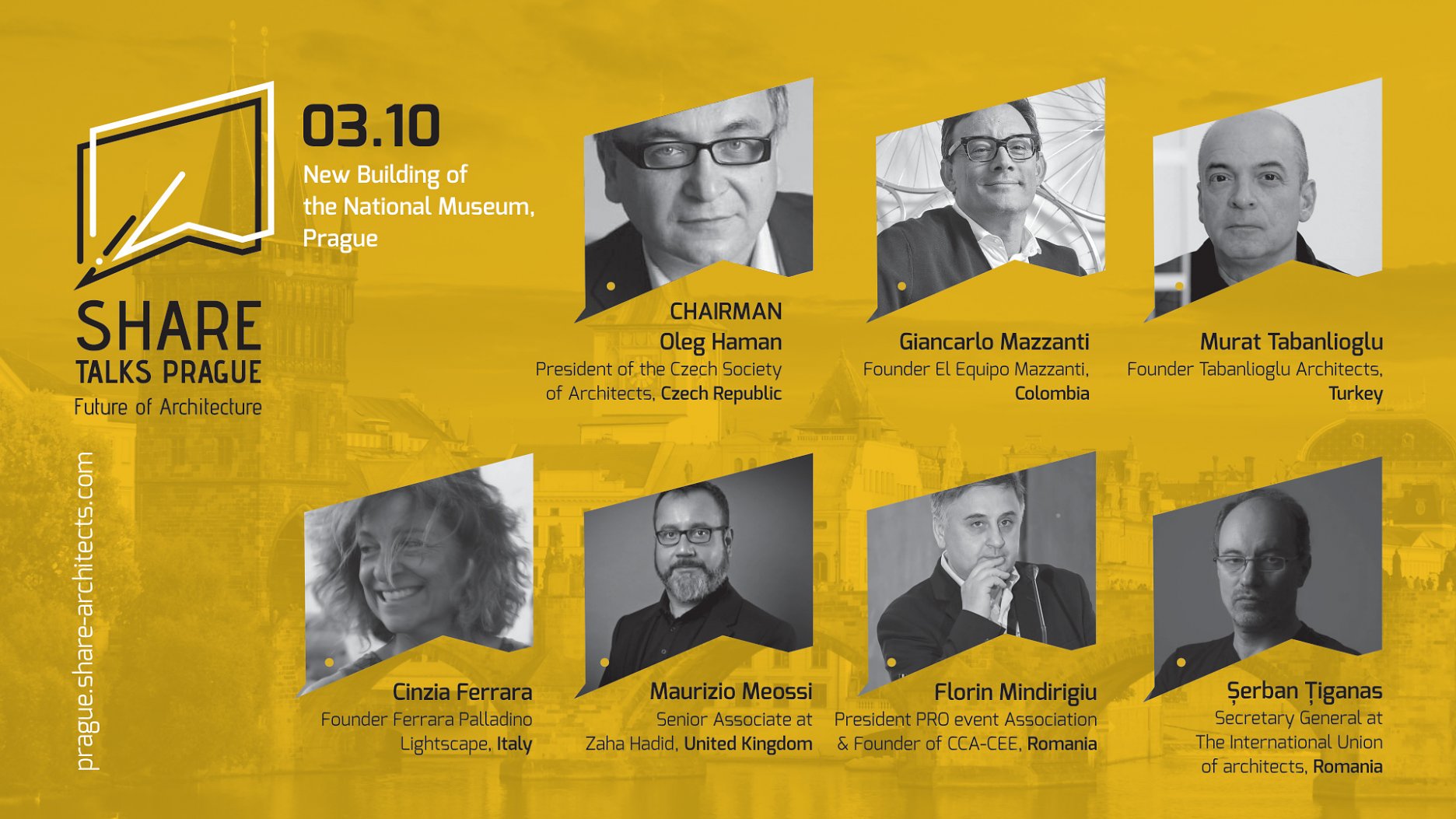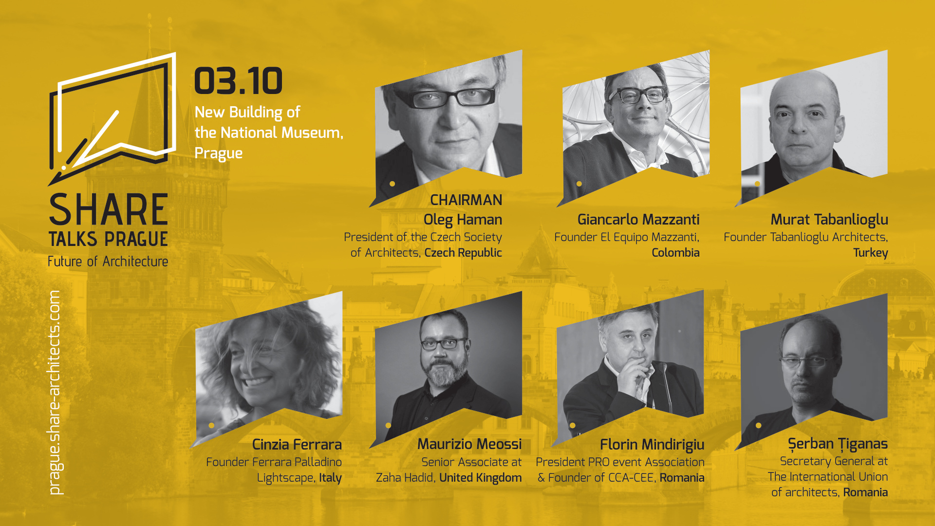 S cieľom stať sa dominantou kultúrnych architektonických podujatí v Českej republike, SHARE Talks PRAGUE 2019 je organizované spoločne s Obcou architektov a súčasťou európskeho programu SHARE Architects za rok 2019. Zhromažďuje niektorých z najvýznamnejších architektov súčasnosti. Súčasťou podujatia budú prednášky medzinárodných prednášateľov nasledované debatami na tému "Budúcnosť architektúry". SHARE Talks Prague tiež predstaví novú knihu s názvom "Návrh profilu budúceho architekta" (ang. Designing the profile of the future architect).