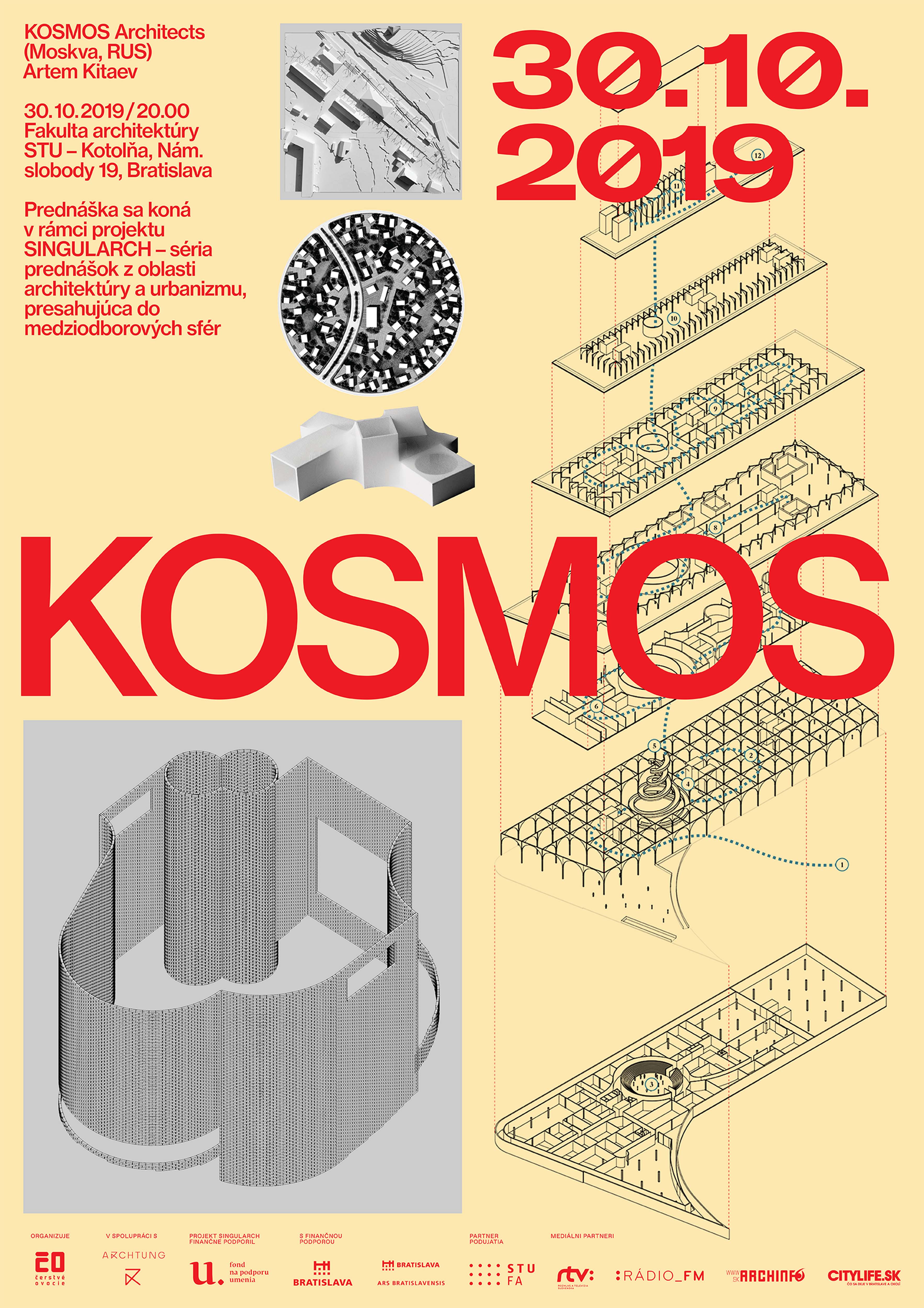 KOSMOS Architects je ateliér založený v Moskve mladými architektmi – Artem Kitaev, Leonid Slonimskiy a Nikolay Martynov. Ich tvorbu charakterizuje spájanie umenia a technológie, globálna skúsenosť s rešpektom pre miestny kontext a v neposlednom rade európska profesionalita a ruský drive. Súčasná virtuálna spolupráca spája partnerov so sídlom v Bazileji, Moskve, Bangkoku a New Yorku. Zaoberajú sa tvorbou prostredia všetkých typov a mierok: od kľučky na dverách po mesto; od hardcore architektúry až po pop-art inštalácie.