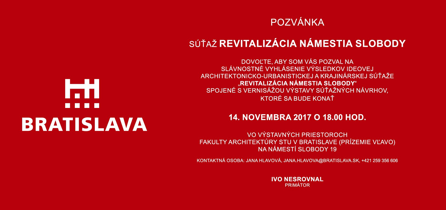| Kontakt | Jana Hlavová +421 259 356 606 jana.hlavova@bratislava.sk |