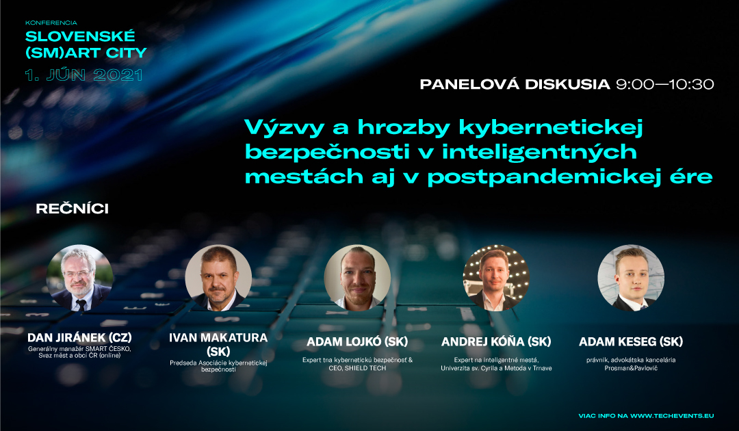 Témou 1. diskusného panela konferencie budú Výzvy a hrozby kybernetickej bezpečnosti v inteligentných mestách aj v postpandemickej ére. Pandemická situácia totiž akceleruje aj digitalizáciu miest, ktorá sa však do praxe dostala až v dôsledku paniky. Tá digitálnu transformáciu dostáva do reality v značne skrátenom čase, čím vzniká príležitosť pre nebezpečné kybernetické útoky. Svedkom jedného z nich bol aj Dan Jiránek, generálny manažér SMART ČESKO, Svaz měst a obcí ČR, a to v čase, keď pôsobil ako primátor Kladna. Vírus, ktorý vtedy napadol kladenský magistrát, sa maskoval ako bežná faktúra, ktorá však po otvorení kompletne zašifrovala celý počítač. Celú situáciu však zachránil kvalitný bezpečnostní systém, vďaka ktorému vírus nakoniec zničil dáta len v jednom počítači.