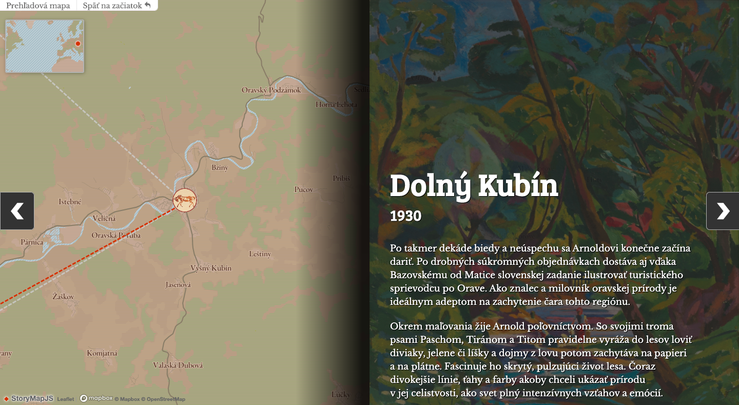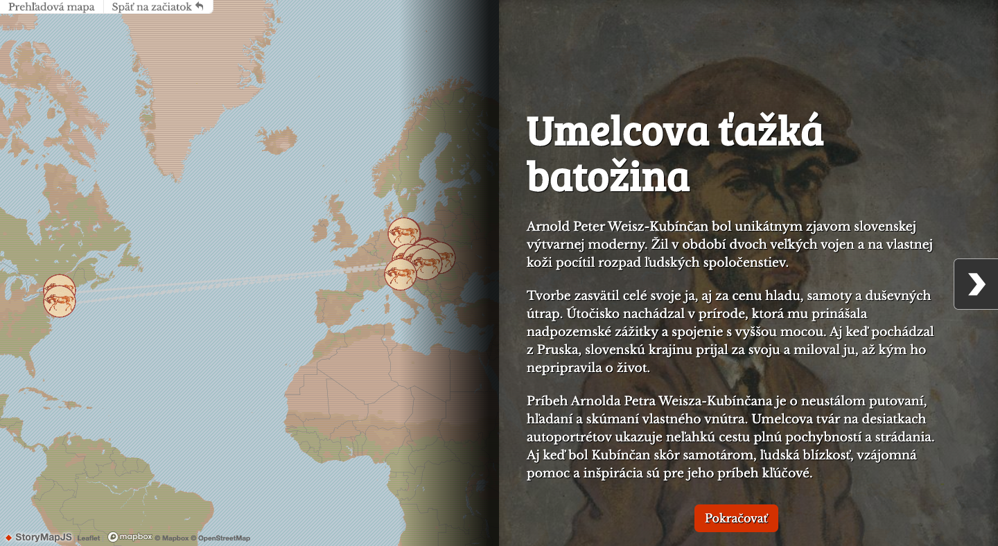 Po minuloročnej výstave Umelcova (ťažká) batožina. Arnold Peter Weisz-Kubínčan (1898 - 1945) v Slovenskej národnej galérii pokračujeme v rozprávaní neobyčajného príbehu tohto autora – tentokrát digitálne. Oddelenie lab.SNG vytvorilo interaktívnu mapu, ktorá ukazuje Kubínčanovo putovanie a pomocou autoportrétov ilustruje umelcovu psychiku aj ducha doby medzi dvoma svetovými vojnami. Kubínčanov komplikovaný a dojemný príbeh môžete bližšie spoznať na www.kubincan.sng.sk.