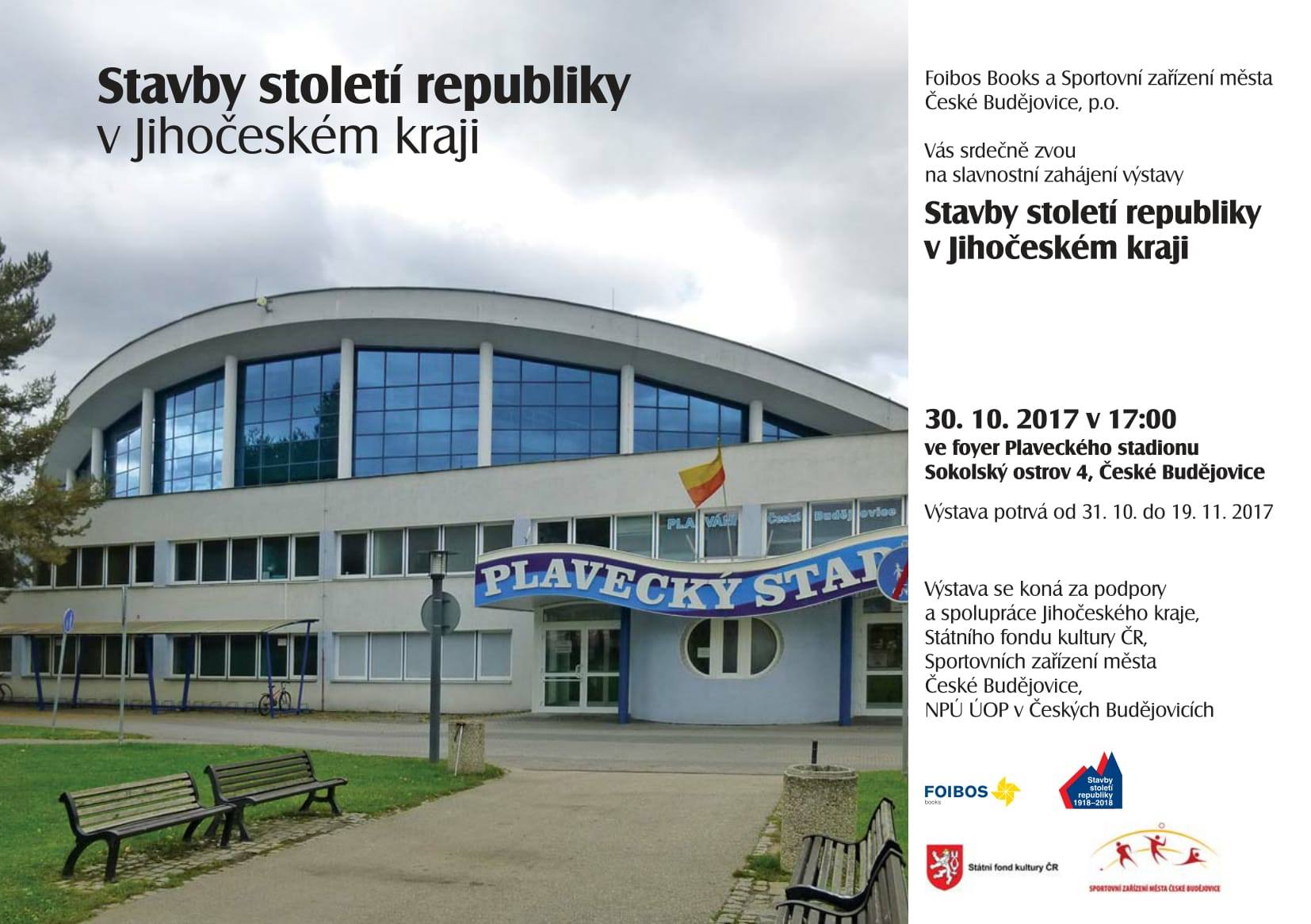 Od 30. října do 19. listopadu se ve foyer Plaveckého stadionu v Českých Budějovicích koná výstava s názvem Stavby století republiky v Jihočeském kraji. Vernisáž se uskuteční 30. října 2017 v 17:00.