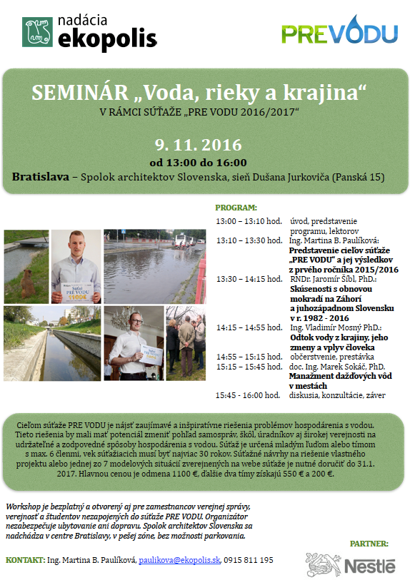 Semináre sú bezplatné a otvorené aj pre zamestnancov verejnej správy, verejnosť a študentov nezapojených do súťaže PRE VODU.