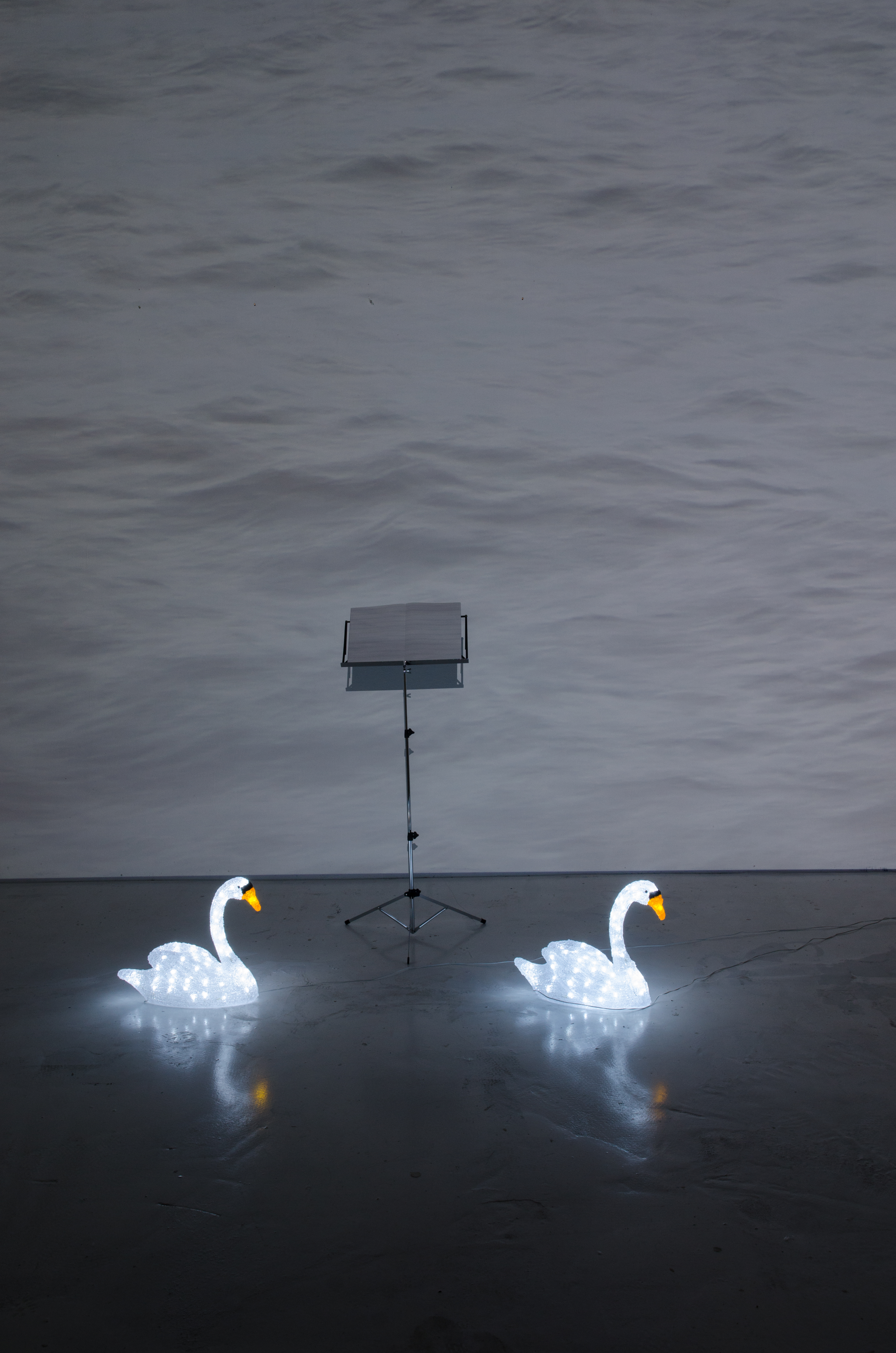 Pre pavilón vytvorila Jana Želibská inštaláciu, ktorej dominuje monumentálna projekcia mora nafilmovaného priamo v Benátkach. Rad svietiacich labutí spočíva na ostrovoch, reprezentujúcich neutíšiteľnú túžbu ľudí po trvácnosti uprostred sveta poháňaného neustálymi zmenami, ktoré prinášajú aj nevyhnutnosť strát po prekročení priepasti medzi minulosťou a prítomnosťou. Drevo vyplavené z Dunaja sa pozlátením stalo sochárskym objektom. V dievčati sa prelínajú protiklady dieťaťa a ženy, v labuti splývajú žena a muž, a zdanlivo pokojná meditácia o transcendencii a večnosti po chvíli odhalí apokalyptickú víziu, z ktorej mrazí. Apokalypsa znamená zjavenie tajomstiev, prinášajúce radikálnu zmenu v usporiadaní sveta aj v duchovnom raste. Vo videoinštalácii s kontrastom svietiacich labutí a pozláteného dreveného objektu autorka sarkasticky upozorňuje na „všadeprítomné ready-made objekty, ktoré nás obklopujú a tvoria náš čoraz viac umelý, jednorazový, ponáškový svet“. Pre Janu Želibskú je labuť poslom zmeny ako symbol vnútornej slobody krásy, lásky, hĺbky, čistoty, vernosti a symbiózy protikladov. Témou diela je politická a ekologická kataklizma planéty, no „nie ako komentár bezvýchodiskového stavu, ale ako výzva a zamyslenie o nádeji“.