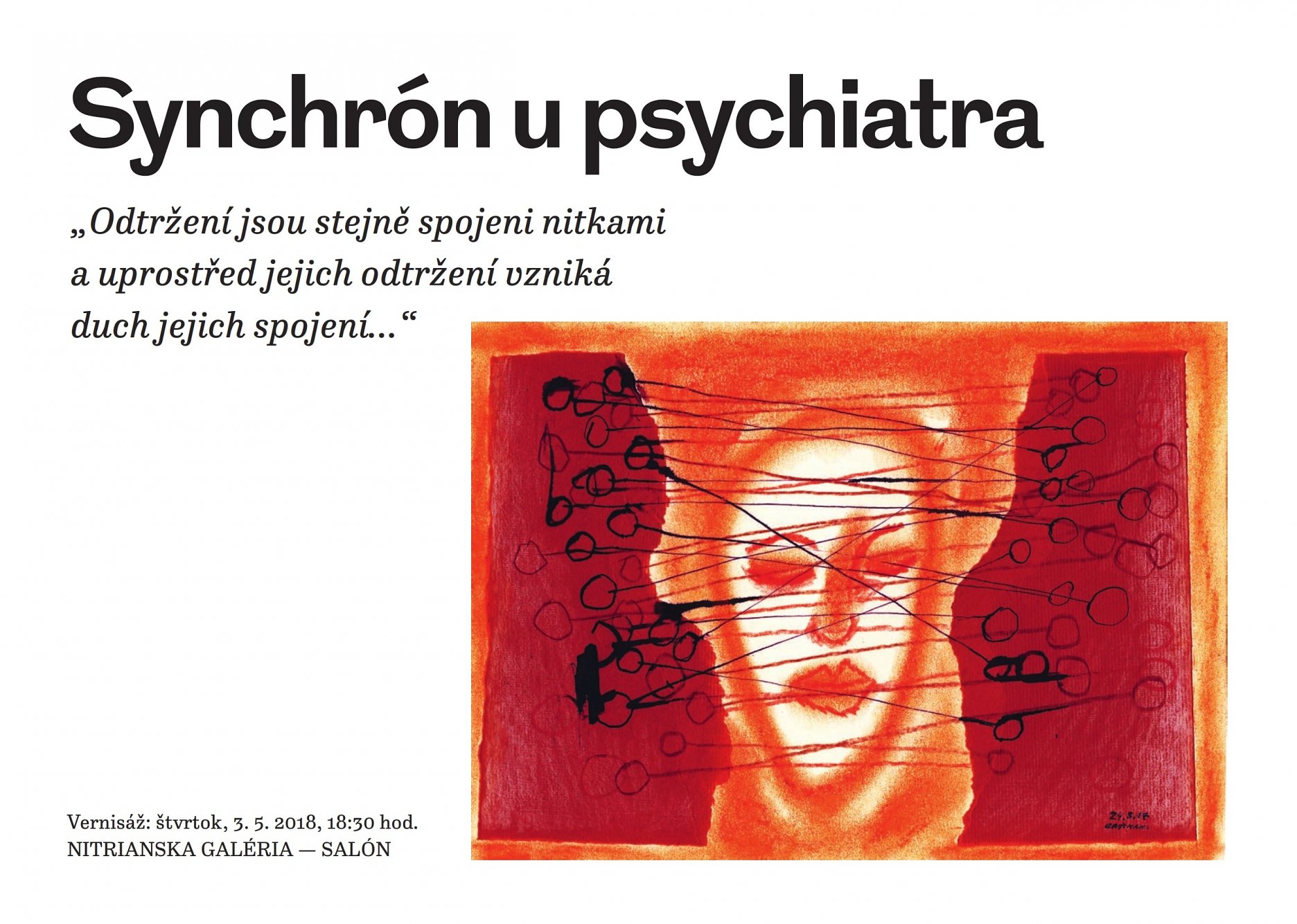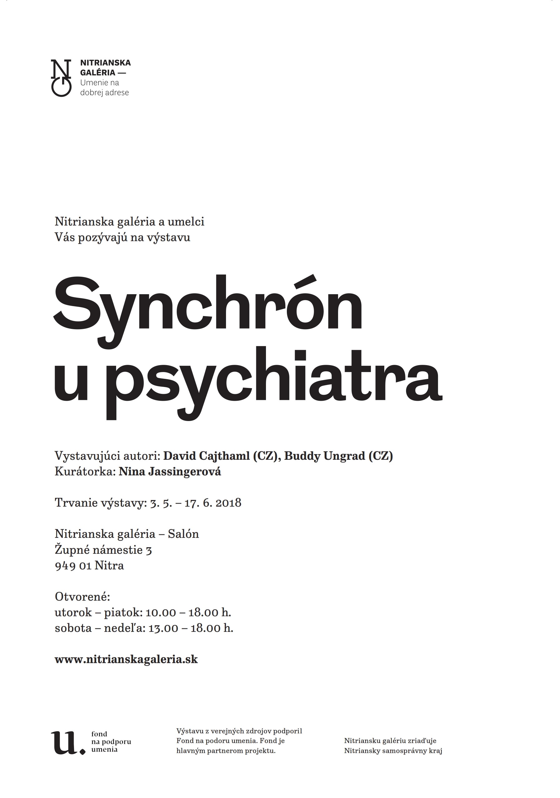 Výstava Synchrón u psychiatra je výsledkom niekoľkých synchrónne prebiehajúcich udalostí v určitom čase. V časovo ohraničenom priestore od jari 2016 až leta 2017 kurátorka tejto výstavy, prežívajúca práve obdobie ťažkých životných strát a z toho vyplývajúcich depresií, začala vo virtuálnom priestore sociálnej siete bezmyšlienkovito, ale intenzívne vnímať takmer každodennú tvorbu výtvarníka Davida Cajthamla a básnika Buddyho Ungrada. Zároveň celý rok pravidelne navštevovala psychiatrickú ambulanciu, ktorá vyzerala skôr ako galéria. Každodenne publikované obrázky Davida Cajthamla obsahovali poetické texty s podtitulom „u psychiatra“, kde postava psychiatra je akýmsi katalyzátorom (niekedy v polohe subjektu, inokedy objektu), ktorý umožňuje naširoko – nahlboko rozohrať tragikomédiu všetkých našich životných projekcií, transferencií i tráum a traumičiek, túžob, pocitov a emócií, naplnených, nenaplnených či stratených. Komentáre Buddyho Ungrada do nich často vnášali vtip a ďalšiu významovú vrstvu. Zároveň v tom čase intenzívne publikoval svoje básne, reflektujúce práve stavy smútkov, strát, zmarených či nereálnych lások.