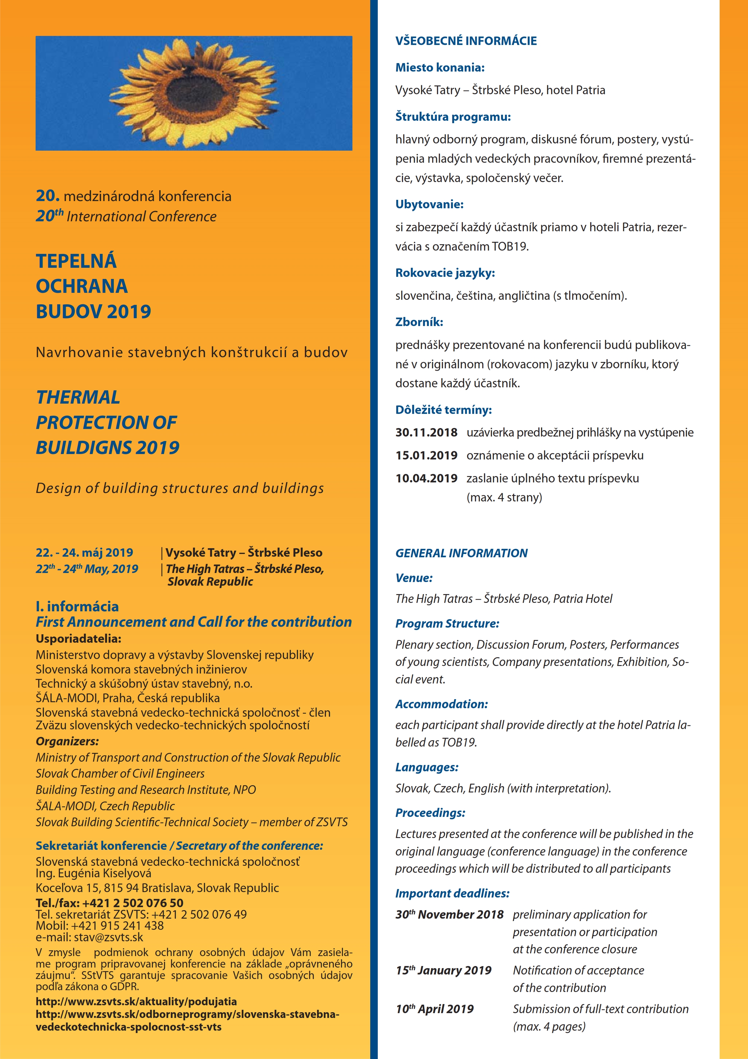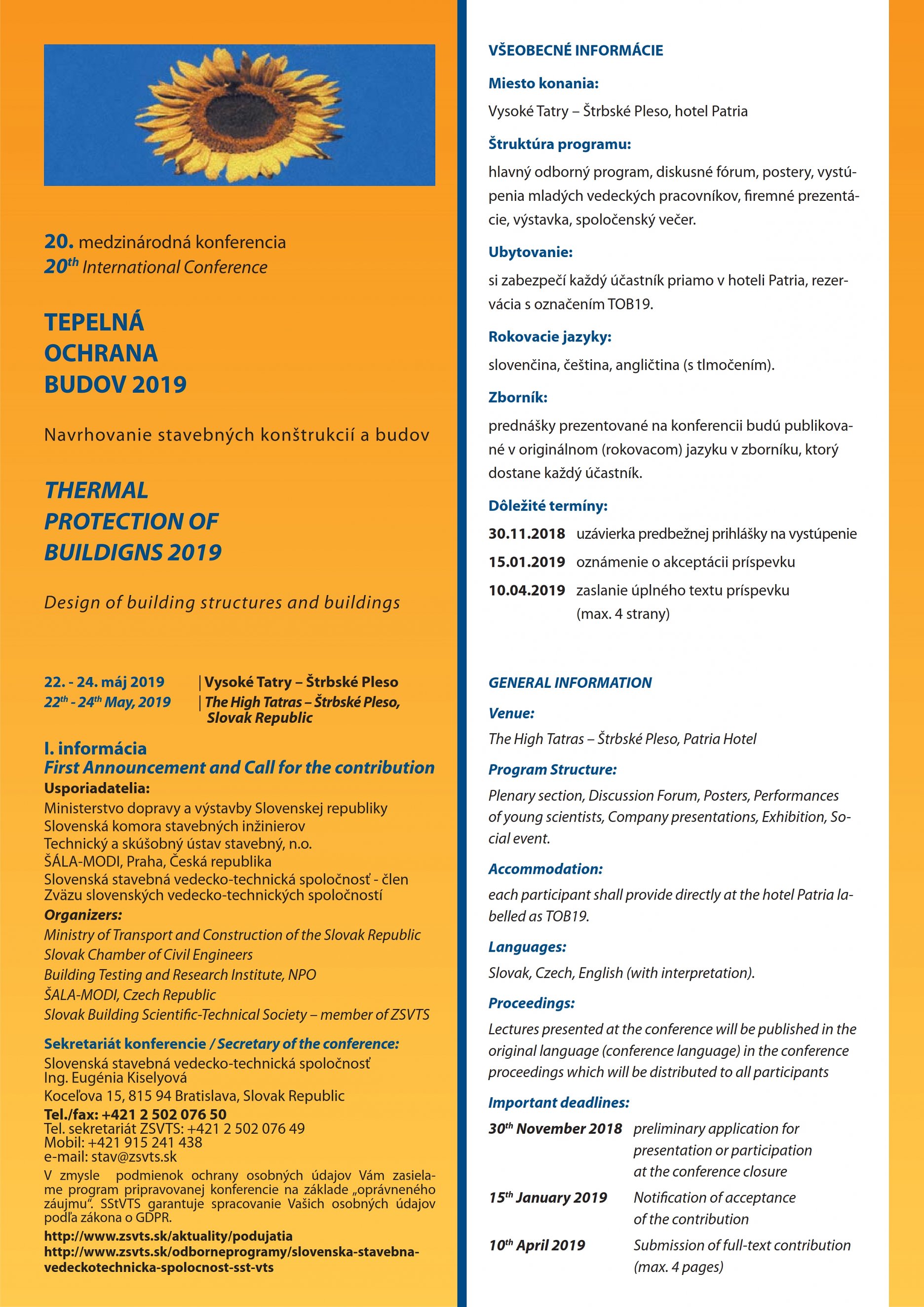 Termín konania: 22-24. mája 2019 vo Vysokých Tatrách na Štrbskom Plese, hotel Patria