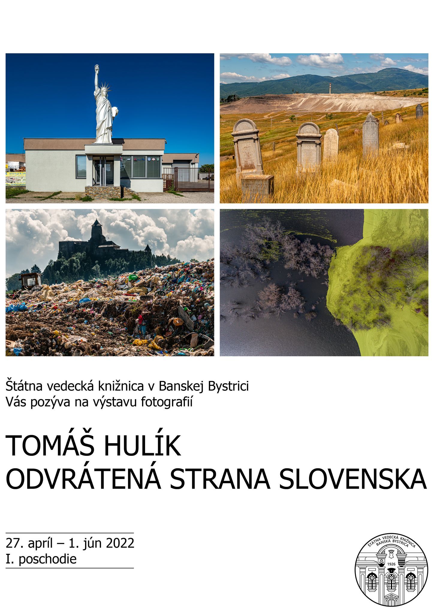 (tlačová správa) Od stredy 27. apríla 2022 je v Štátnej vedeckej knižnici v Banskej Bystrici (ŠVK) sprístupnená výstava popredného fotografa Tomáša Hulíka a jeho dlhodobo mapujúceho projektu Odvrátená strana Slovenska. Na 36 veľkoformátových fotografiách sú zaznamenané podoby Slovenska citlivým vnímaním autora.