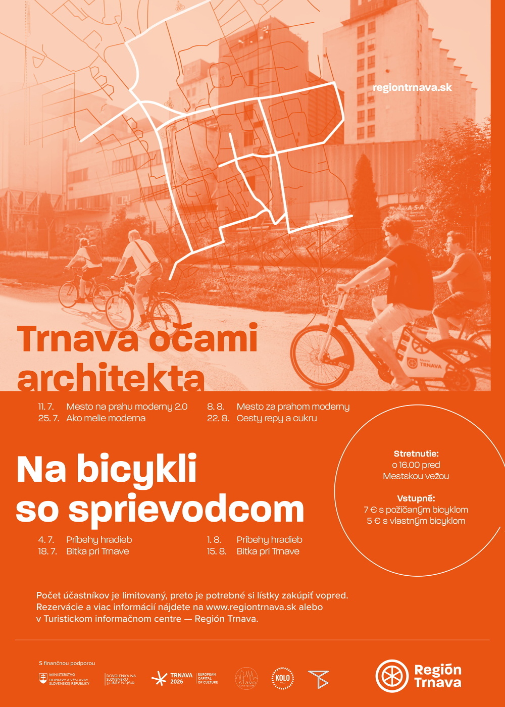 Projekt Trnava očami architekta sa opäť vracia do trnavských ulíc, aby vám priblížil čoraz populárnejšiu históriu industriálnych stavieb, z ktorých sa stali dominanty 20. storočia. K nim pribudnú aj ďalšie prehliadky zamerané na historické témy, ktoré budú priamo ušité na prehliadku na bicykli.