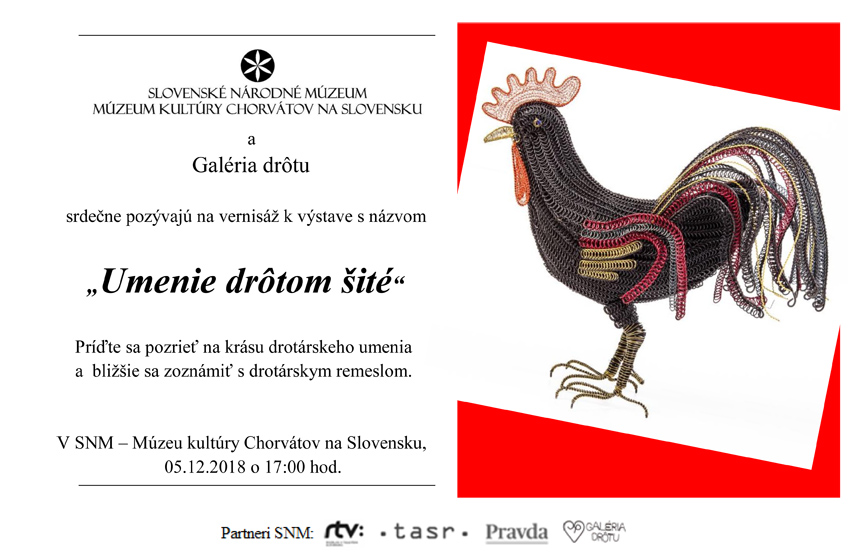 V priestoroch SNM-Múzea kultúry Chorvátov na Slovensku bude od 06. decembra do 28. februára 2019 sprístupnená výstava „Umenie drôtom šité", ktorá prezentuje výrobky slovenských umeleckých drotárov z dielne Galéria drôtu. Výstava predstavuje umenie drotárstva v tradičnom, ale aj súčasnom, modernom duchu.
