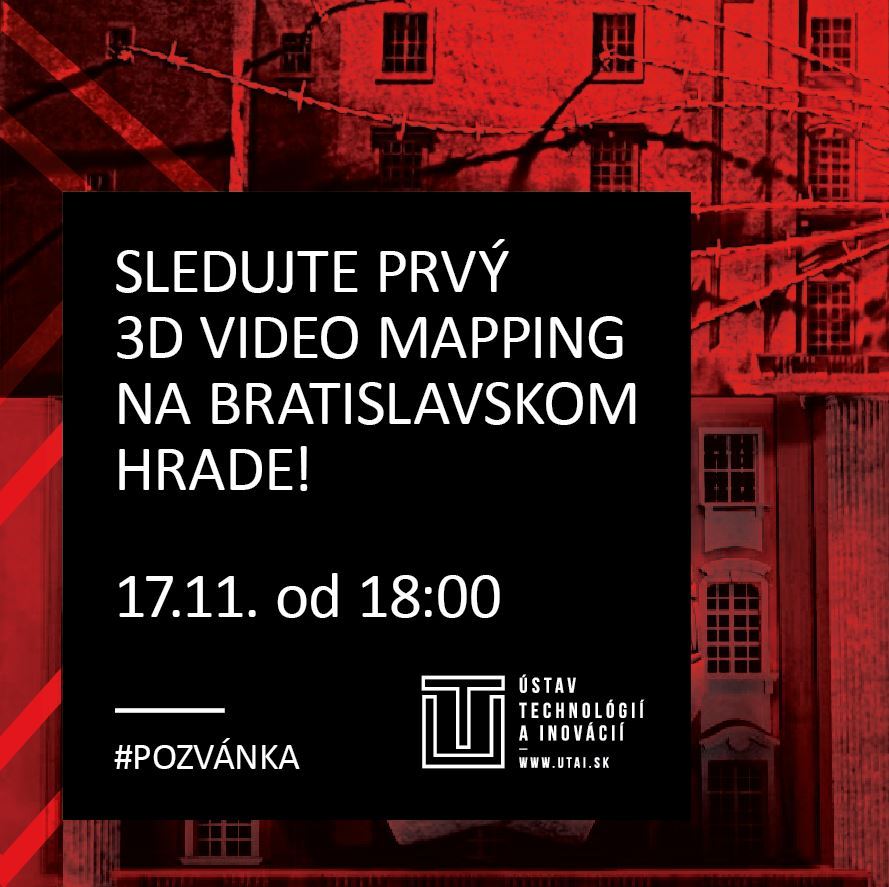 Video mapping sa bude premietať na budove Bratislavského hradu len v nedeľu 17.11.2019 o 18:00, 19:00 a 20:00 hod. Návštevníkom bude sprístupnený vonkajší priestor areálu Bratislavského hradu, odkiaľ je najlepší výhľad na video mapping. Vstup je voľný!