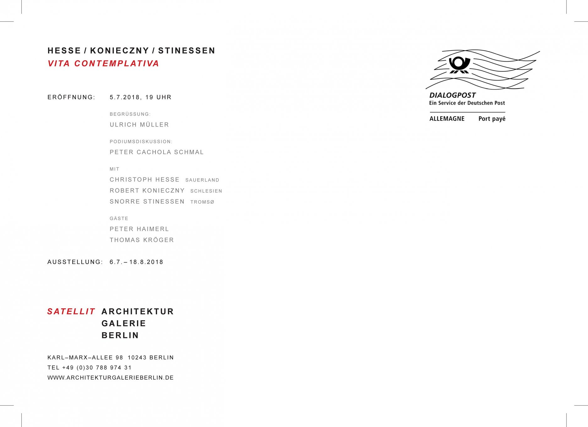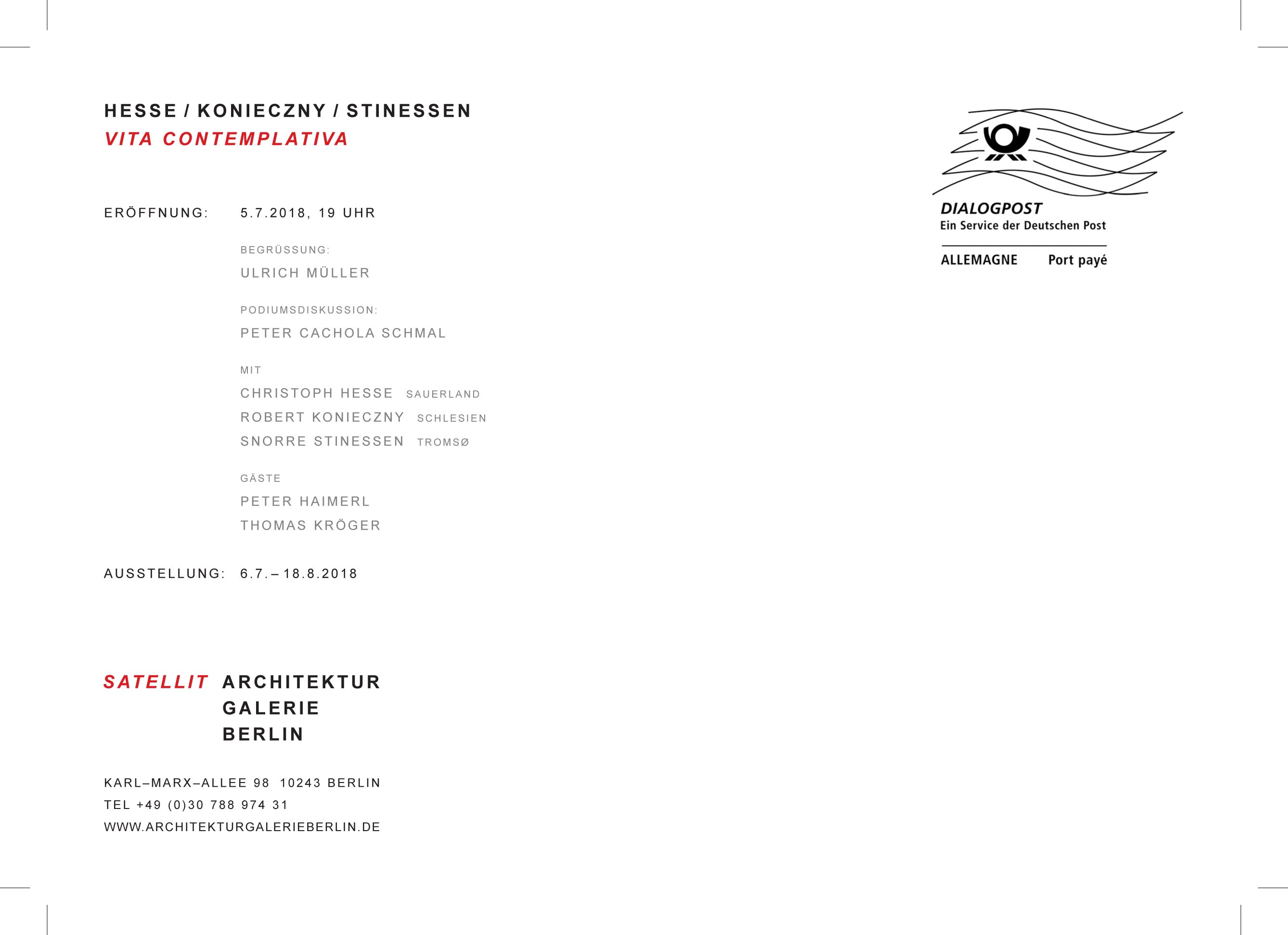 | Kontakt | ARCHITEKTUR GALERIE BERLIN +49 30 78897431 |