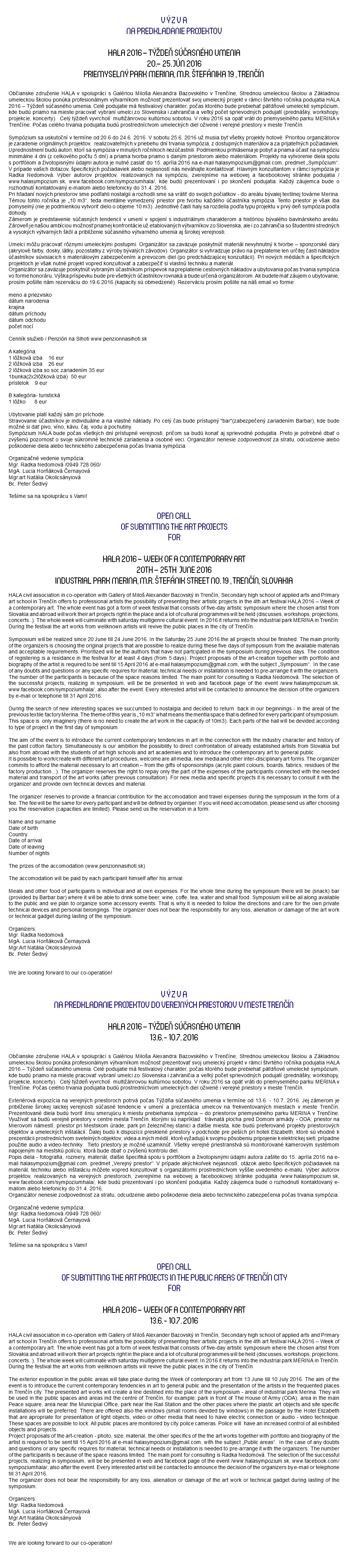 Na prihlásenie stačí poslať projekt, ktorý chcete v Hale realizovať, pripojiť portfólio a poslať na adresu halasympozium@gmail.com do 15. apríla.