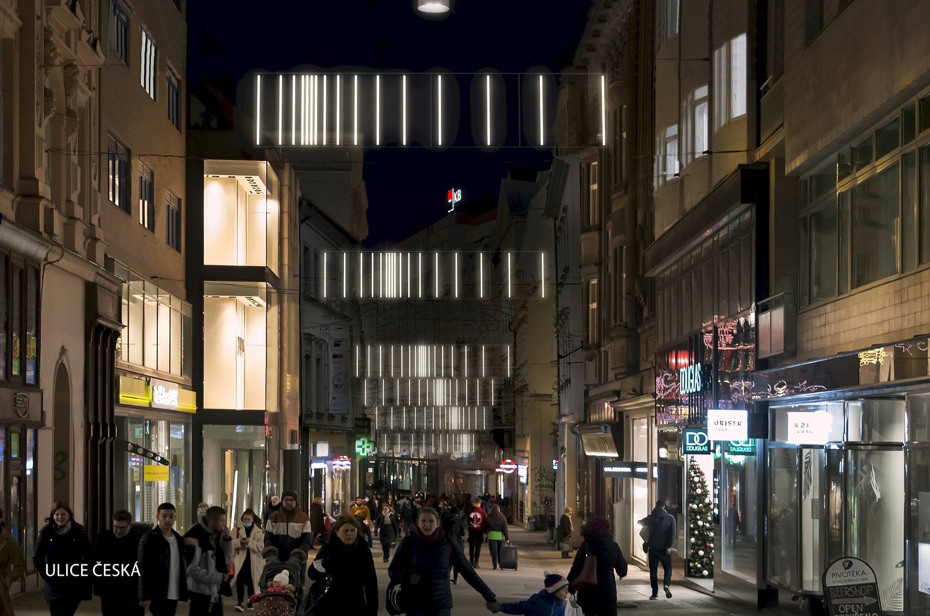 (tlačová správa: CCEA MOBA) Rada statutárního města Brna dnes schválila výsledky soutěže o návrh, jejímž cílem bylo pro občany a návštěvníky Brna vybrat nové umělecké osvětlení – girlandy v ulicích Masarykova, Česká, Kobližná, Běhounská a Středova. Přihlásilo se deset návrhů, z nichž porota chtěla vidět čtyři rozpracované detailněji. Nejlepším třem pak udělila ceny. Autorským týmem první ceny jsou pod značkou VISUALOVE architekti Jan Machát a Michal Okleštěk a umělkyně Veronika Šmírová. Druhou cenu obdržela dvojice umělec-architekt Pavel Korbička a Ondřej Bělica a třetí cenu získalo st.dio v sestavě Josef Kortan, Jiří Mašek, Dávid Sivý a Jan Nálepa. Nové girlandy se rozsvítí ještě tento rok, předběžný termín je září 2022.