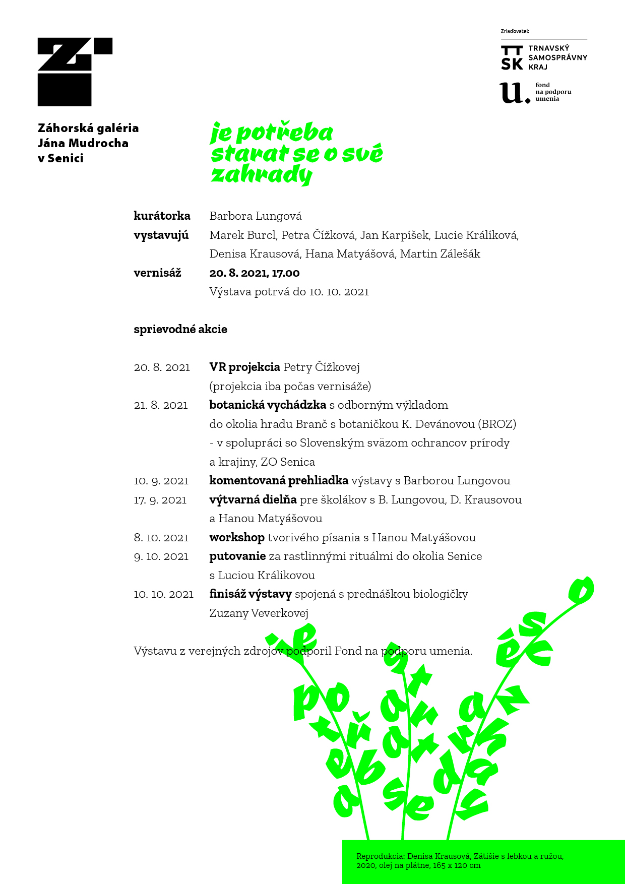 | Kontakt | Záhorská galéria Jána Mudrocha v Senici +421 34 651 29 37 zahorskagaleria@zupa-tt.sk |