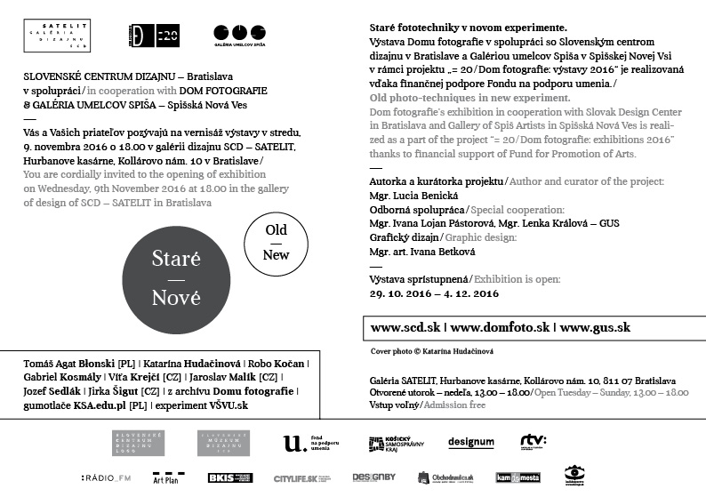 Výstava z produkcie Domu fotografie pod názvom Staré – Nové je realizovaná v rámci dvadsaťročnice Domu fotografie ( 1996 – 2016) v spolupráci s Galériou umelcov Spiša v Spišskej Novej Vsi a Slovenským centrom dizajnu v Bratislave. Podujatie štartuje transformáciu archívu Domu fotografie do Kabinetu Domu fotografie pri SCD – Slovenskom múzeu dizajnu v Bratislave. Výstavy k 20. výročiu Domu fotografie sú realizované vďaka finančnej podpore Fond na podporu umenia.