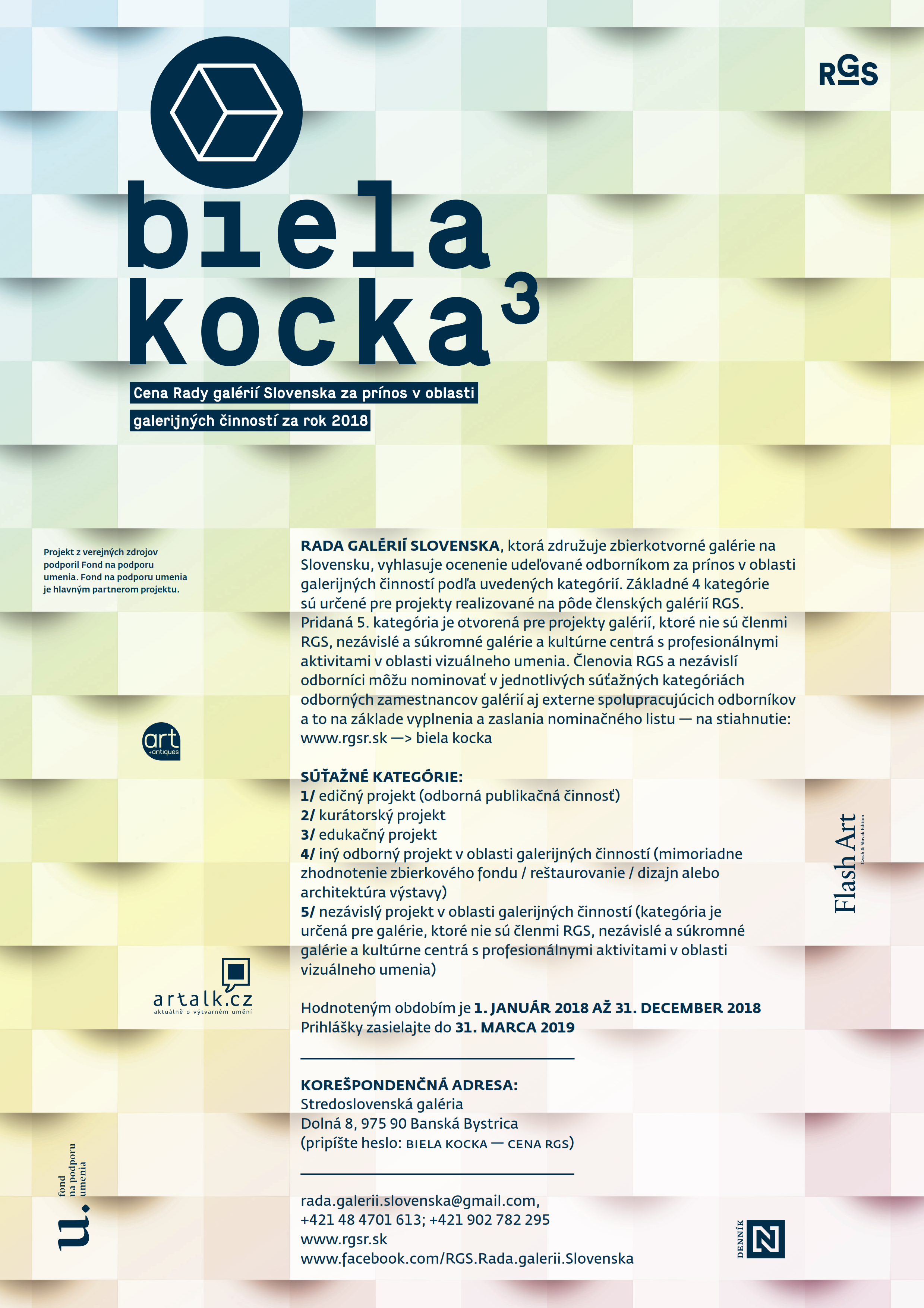 Nominované projekty bude posudzovať odborná porota v zložení: Mgr. Zuzana Labudová, PhD.; Mgr. Hana Hudcovičová Lukšů; Mgr. Peter Megyeši, PhD.; Mgr. Miloslava Borošová Michalcová; doc. Mgr. art. Svätopluk Mikyta; Mgr. Jana Németh; Lýdia Pribišová, PhD. Po vyhodnotení budú vybraní nominanti pozvaní na jesenné podujatie udeľovania Ceny RGS - BIELA KOCKA².