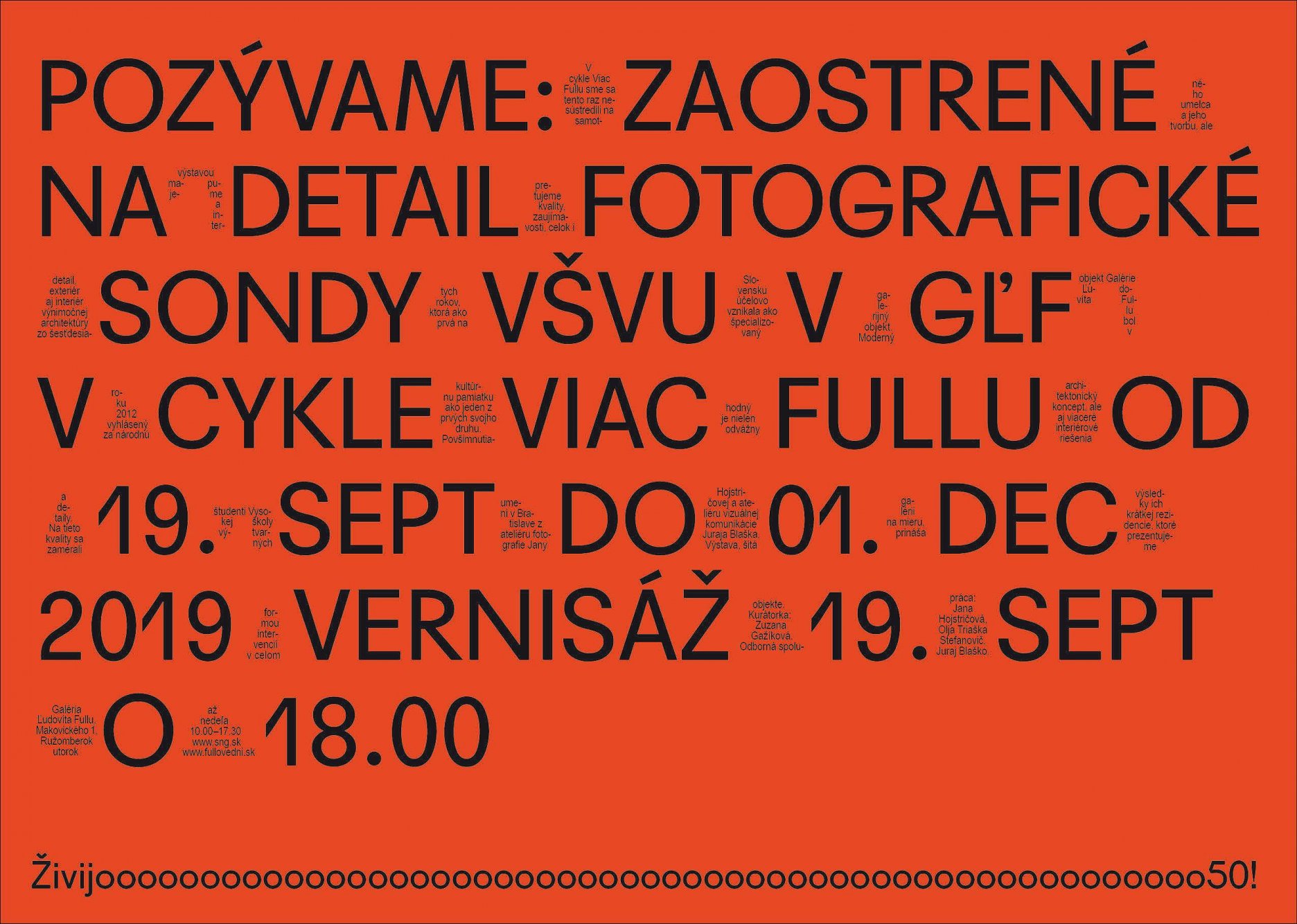 Oslavy 50. výročia založenia GĽF sú súčasťou nultého ročníka viacdňového mestského festivalu Fullove dni, ktoré pokračujú v exteriéri mesta v parku Štefana Hýroša.