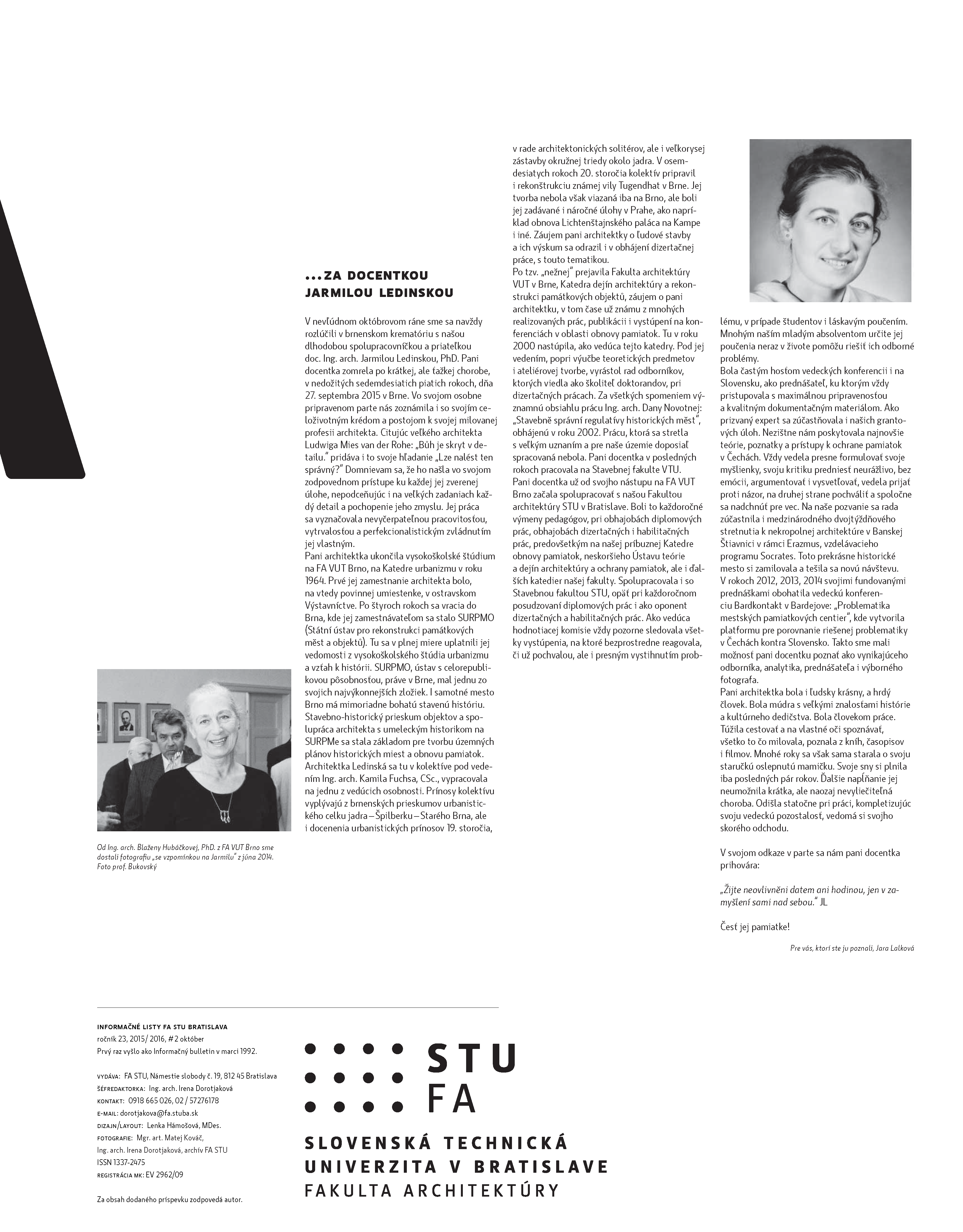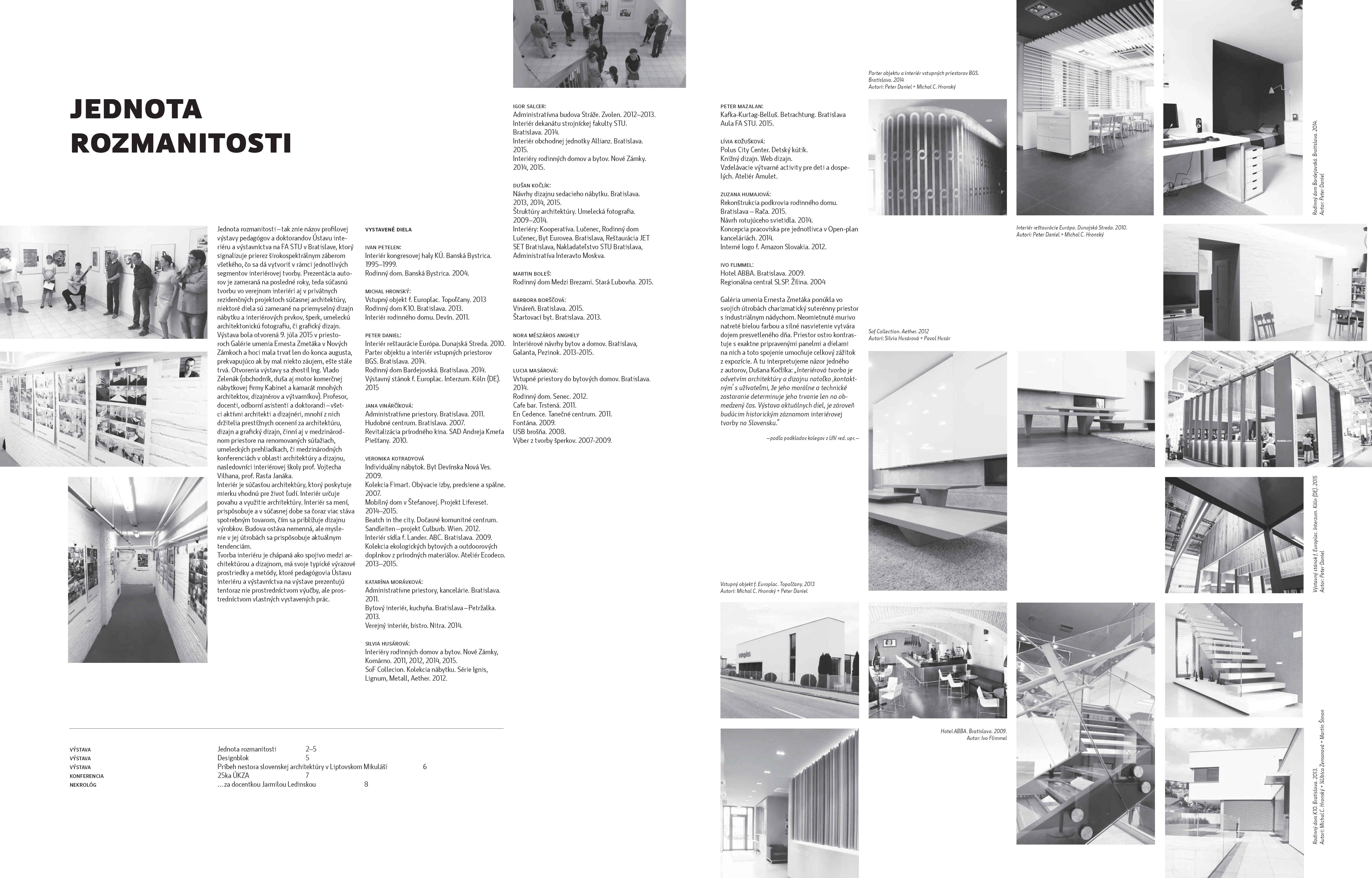 V čísle sú uvedené príspevky o výstave UIV v Nových Zámkoch Jednota rozmanitosti, o výstave Príbeh nestora slovenskej architektúry M. M. Harminca v Liptovskom Mikuláši, o pražskom Designbloku, 25 rokov ÚKAZA, a o výstave kolegov z KVT - Dialógy v UBS a rozlúčili sme sa s Jarmilou Ledinskou.