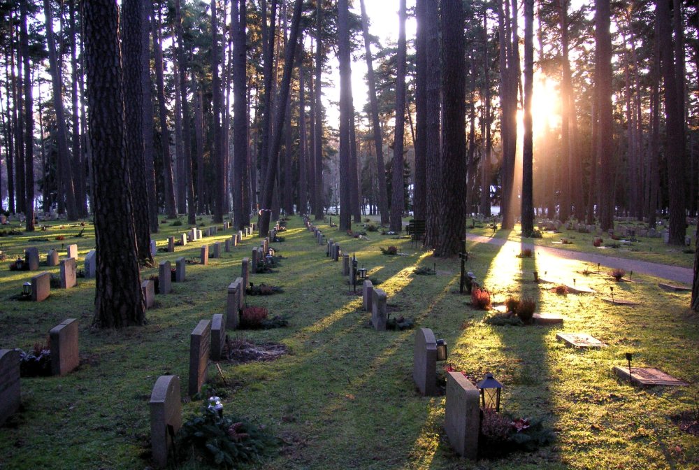 Modernizmus, minimalizmus, používanie surových prírodných materiálov a režírovaný kontakt s prírodou boli odpoveďami na nové potreby spoločnosti. Medzi prvé koncepty tohto druhu patrili škandivnávske realizácie – cintorín Skogskyrkogården architektov Asplunda a Lewerentza pri Štokholme, ktorí zvíťazili v súťaži už v roku 1915 a postupne ho realizovali až do stavby krematória v roku 1940. Ďalším príkladom je kaplnka vo fínskom Otaniemi od Heikkiho a Kaije Sirenovcov z roku 1957.