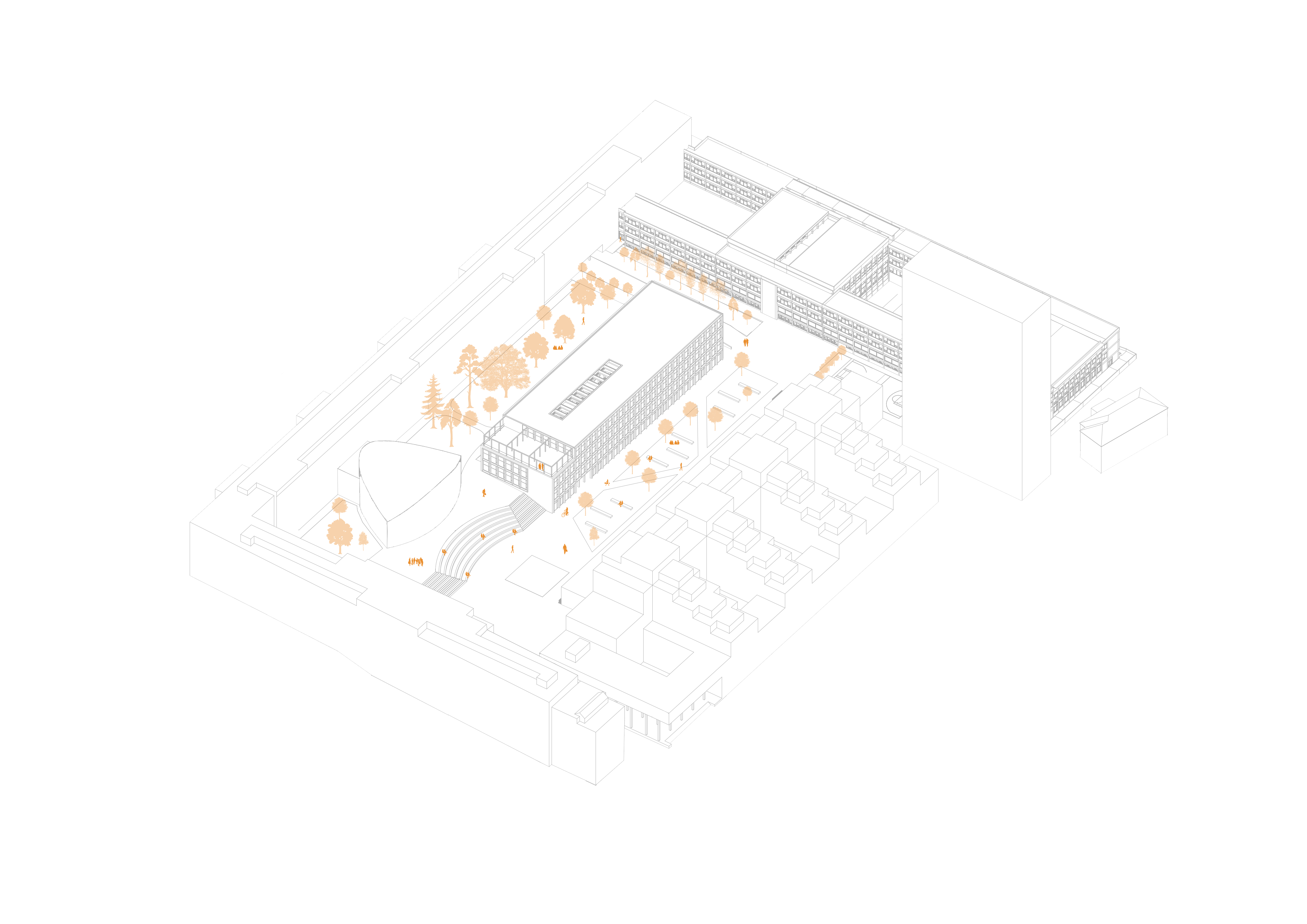 Funkčná náplň objektu bola stanovená zadaním súťaže Inspireli Awards. Výsledný návrh vyšiel z dôkladnej analýzy územia a jednotlivých podkladov súťaže. Dôraz som kládla na odstránenie jednotlivých limitov či problémov areálu a prepojenie areálu s priľahlými fakultami a okolím. V návrhu som pracovala s existujúcou budovou ťažkých laboratórií a transformovala na spomínaný účel. Navrhla som vznik nových vstupov z fakúlt do areálu, tak aby prišlo k oživeniu vnútrobloku a využívanie jeho plôch študentami, pedagógmi či verejnosťou vďaka opätovnému otvoreniu peších priechodov. Transformácia vnútrobloku predstavuje zvýšenie kvality vzdelávania a možnosť vytvorenia spoločenských, kultúrnych či voľnočasových priestorov nielen v interiéri ale aj exteriéri. Takto sa vytvorili podmienky na syntézu akademického prostredia a verejnosti aj vďaka otvoreniu areálu a jeho prepojeniu s hlavnými verejnými priestormi mesta.