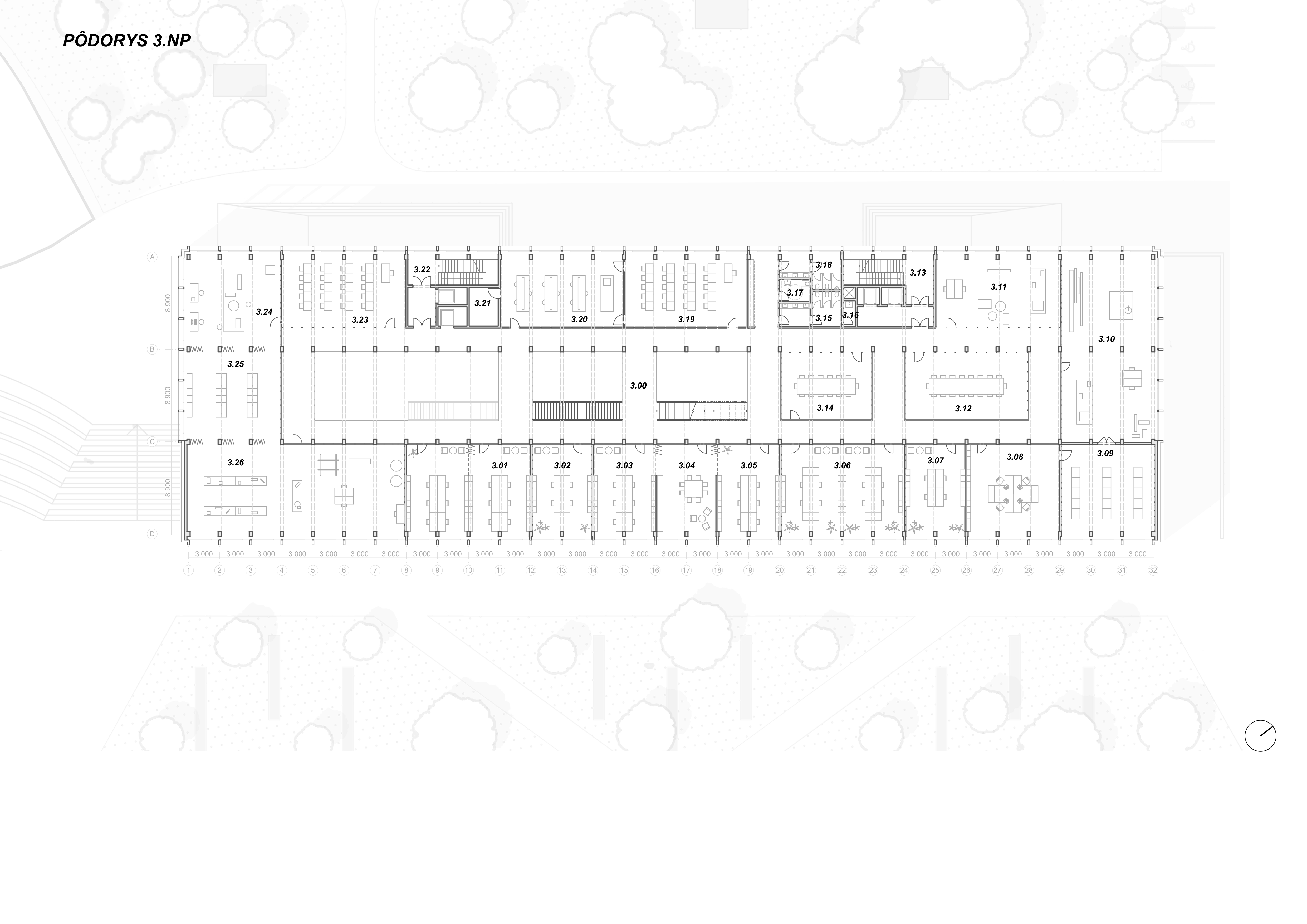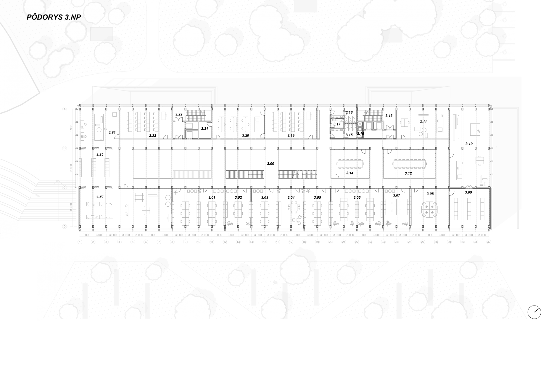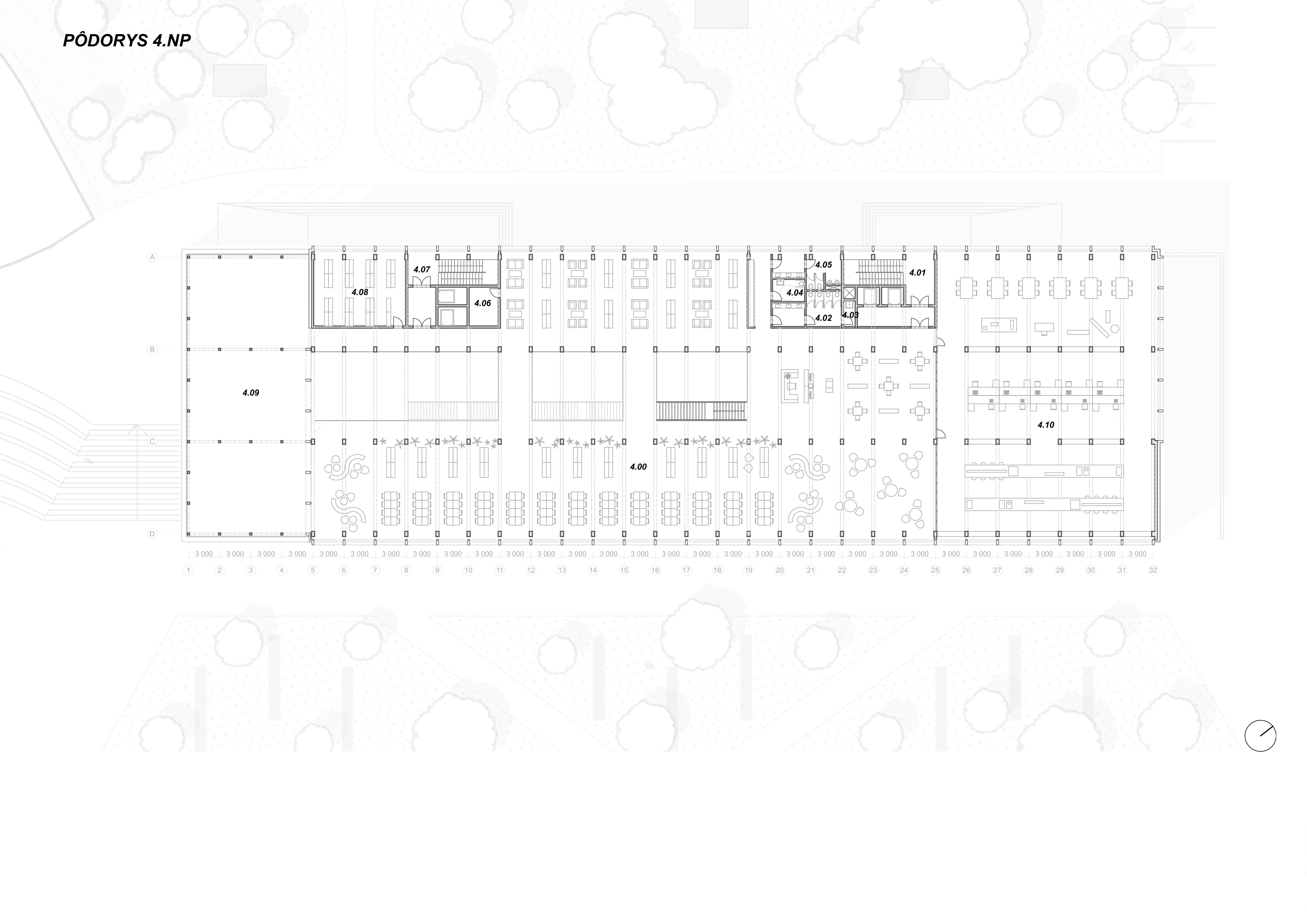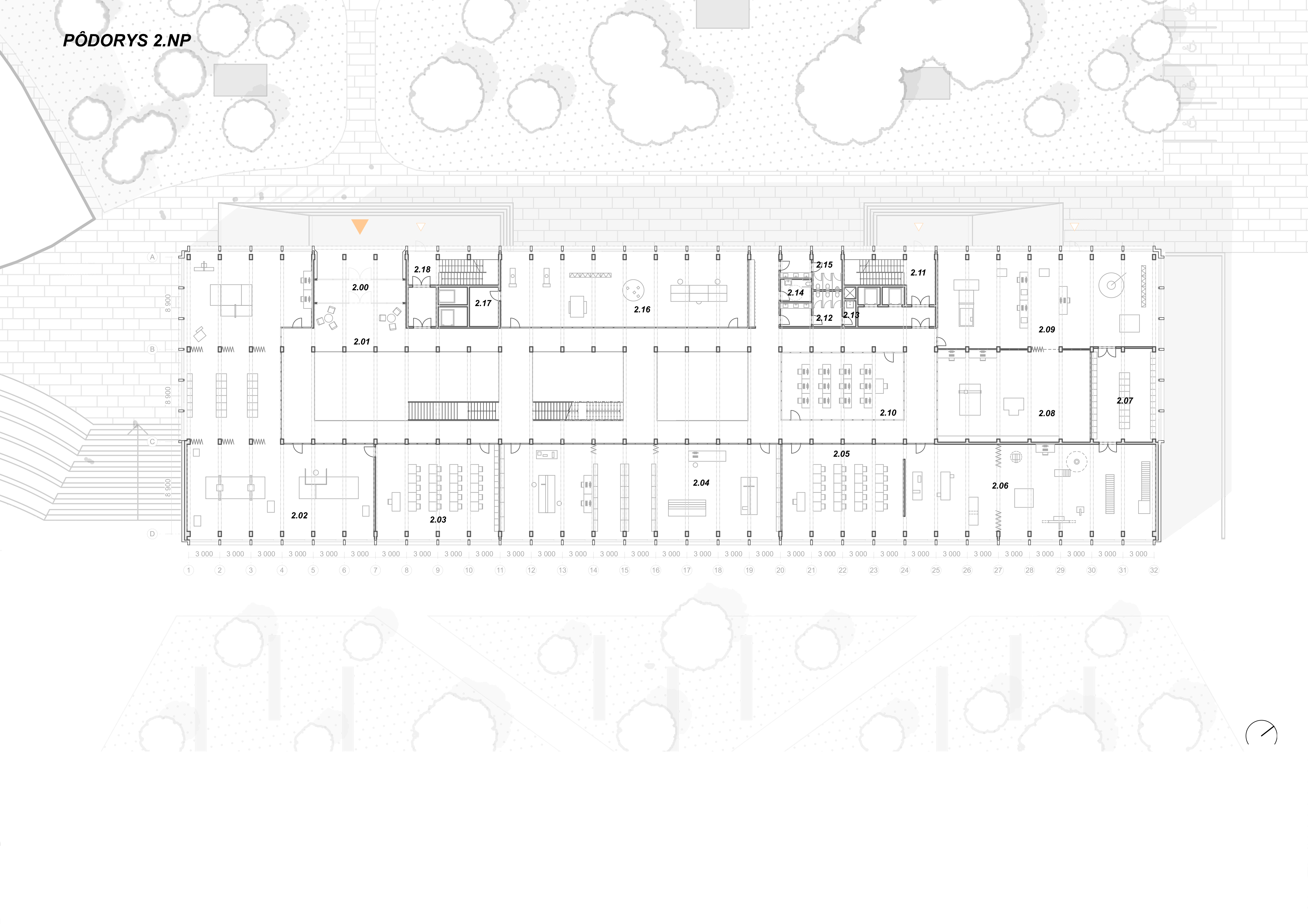 Transformácia budovy ťažkých laboratórií spočívala najmä vo vertikálnom prepojení a otvorení vnútorného priestoru vďaka odstráneniu častí stropných dosiek. Interiér sa prepojil vďaka otvorenej galérií prechádzajúcej cez všetky podlažia umiestnenej v centrálnej časti. Po obvode budovy vznikli súťažou požadované učebne, laboratóriá, seminárne miestnosti či kancelárie. Vďaka tejto polohe miestností, preskleným priečkam či otvorenej galérií sa celý priestor javí ako vzdušný a svetlý.