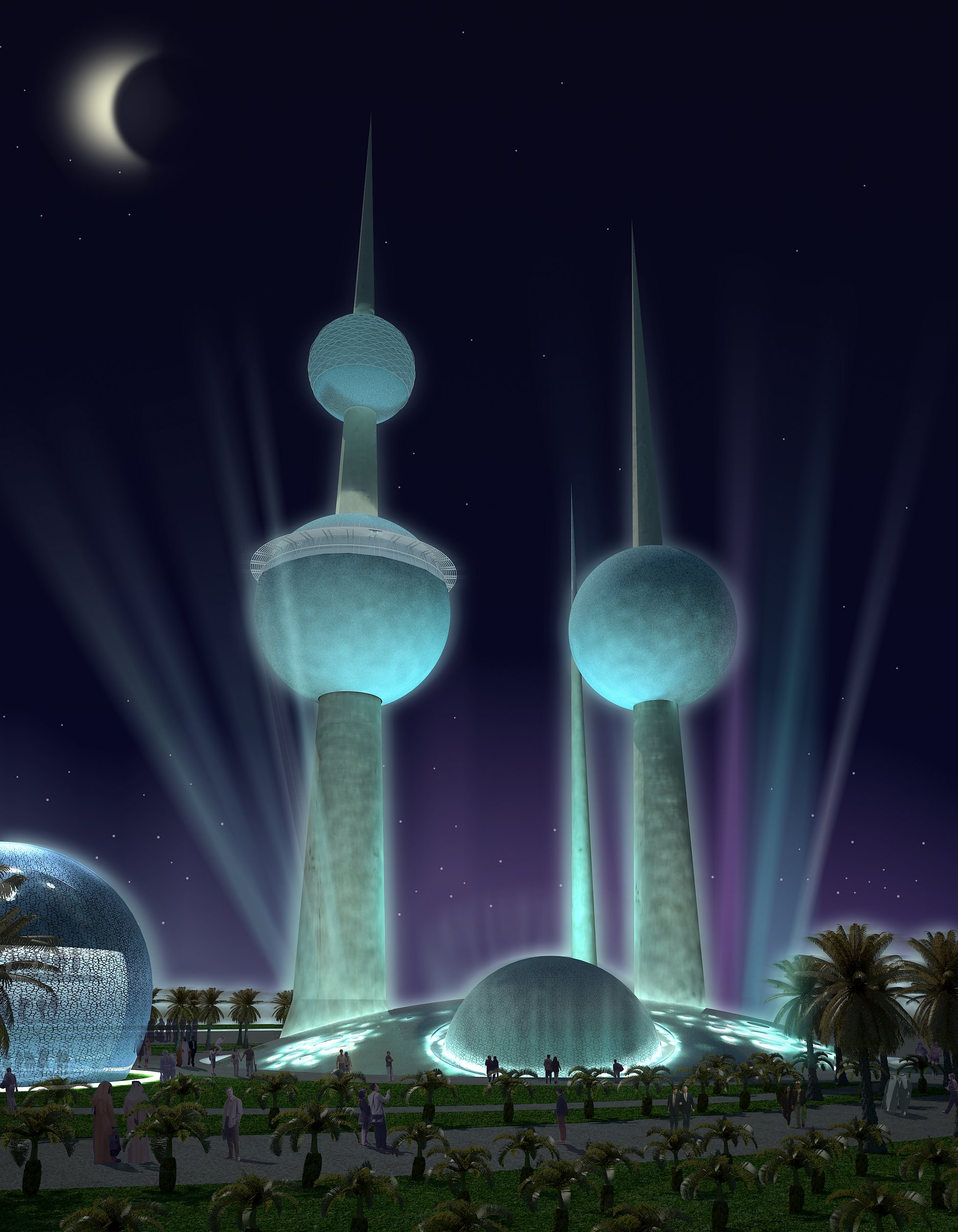 Odpoveďou architektov na tieto požiadavky je návrh hypermoderného multimediálneho centra, využívajúceho takzvanú 3, 4 a 5D techniku, akú je v súčasnosti možné zažiť len na niekoľko málo miestach vo svete. Tu by sa mala stretnúť úžasná najmodernejšia technika a informácie. Nie je to len bežná zábava (entertainment), je to zábavné vzdelávanie (edutainment), čo z tohto centra urobí atrakciu pre celú rodinu a pre návštevníkov najrôznejšieho pôvodu. Zároveň sa tu bude hravým spôsobom napomáhať vzdelávaniu – ako zdroju budúceho rozvoja – a vitalite. Interaktívna koncepcia pritom návštevníkom umožní, aby sa aktívne zapojili do programu. Priebežne môžu fascinujúcim spôsobom spracovať všetky možné mysliteľné témy ako klíma, morská biológia, astronómia, ťažba (využitie) ropy, ale aj dejiny Kuvajtu. Prevádzkovateľ takto má možnosť výberom a zmenami tém udržiavať veže ustavične v stredobode záujmu.