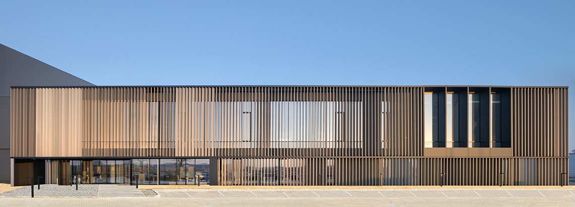 Základom obvodového plášťa sú fasádne systémy TP 52 a SG 52, ktoré zabezpečujú veľkú presvetlenosť vnútorných priestorov a zároveň vysokú tepelnú izoláciu. Okolo obvodovej steny je 600 m² dvojitého plášťa, ktorý tvoria žalúzie CORTIZO na ochranu pred slnečným žiarením a sú účinným riešením na reguláciu dopadu slnečných lúčov na vnútornú teplotu budovy, pretože žalúzie žiarenie absorbujú a odrážajú, čo zvyšuje energetickú účinnosť objektu. Zároveň fungujú aj ako dekoratívny prvok a dodávajú fasáde jedinečný vzhľad.