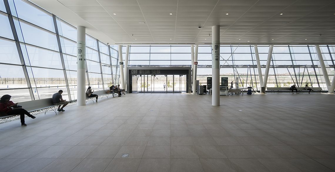 Všetky poschodia sú prepojené výťahmi, eskalátormi a bežnými schodmi, ktoré sú vybavené zábradlím View Crystal Plus od spoločnosti CORTIZO, ktoré inštalovala spoločnosť Uxama. Celkovo bolo nainštalovaných 200 lineárnych metrov tohto zábradlia, ktoré sa vyznačuje minimalistickým dizajnom z hliníkového profilu v tvare písmena U, ktorý podporuje tvrdené vrstvené sklo len v spodnej časti. Toto riešenie spĺňa najvyššie bezpečnostné požiadavky CTE a vydrží zaťaženie 3,0 kN/m pôsobiace na 1,1 m jeho spodnej strany. Z tohto dôvodu je toto zábradlie ideálne pre verejné priestory s veľkým pohybom osôb, ako je napríklad tento výletný terminál, kde bolo použité aj na vymedzenie spoločných priestorov na prvom poschodí.
