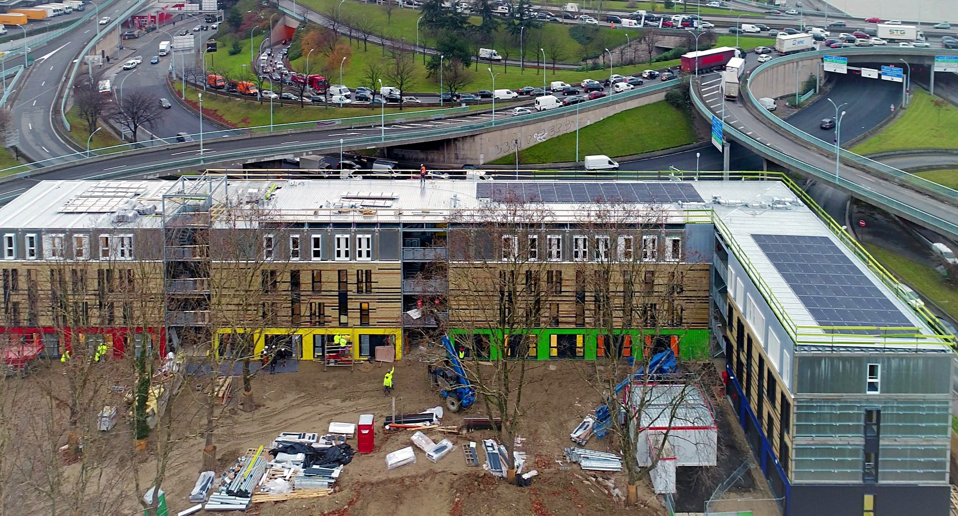 Prvým výsledkom tejto spolupráce je dodávka solidárneho modulárneho hotela. Tento projekt je pre firmu KOMA MODULAR v určitom zmysle zlomový. Prvýkrát  firma zrealizovala štvorposchodový modulárny objekt, prvýkrát buduje na streche ihrisko a prvýkrát je celá budova z modulov s dĺžkou 11 metrov. Celý objekt je poskladaný celkom z 224 veľkopriestorových modulov.
