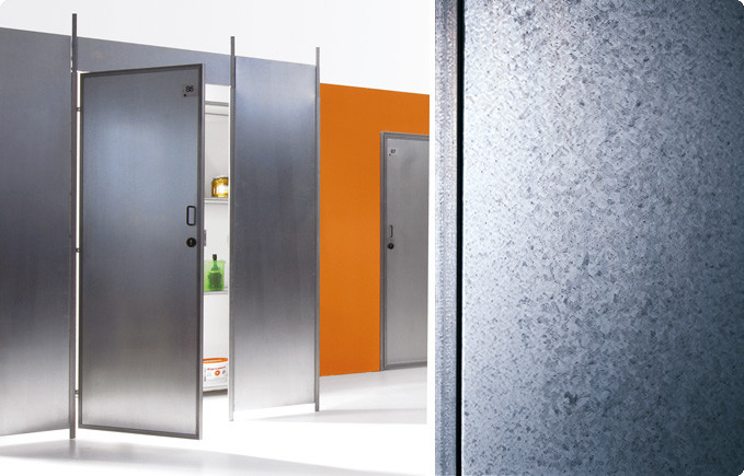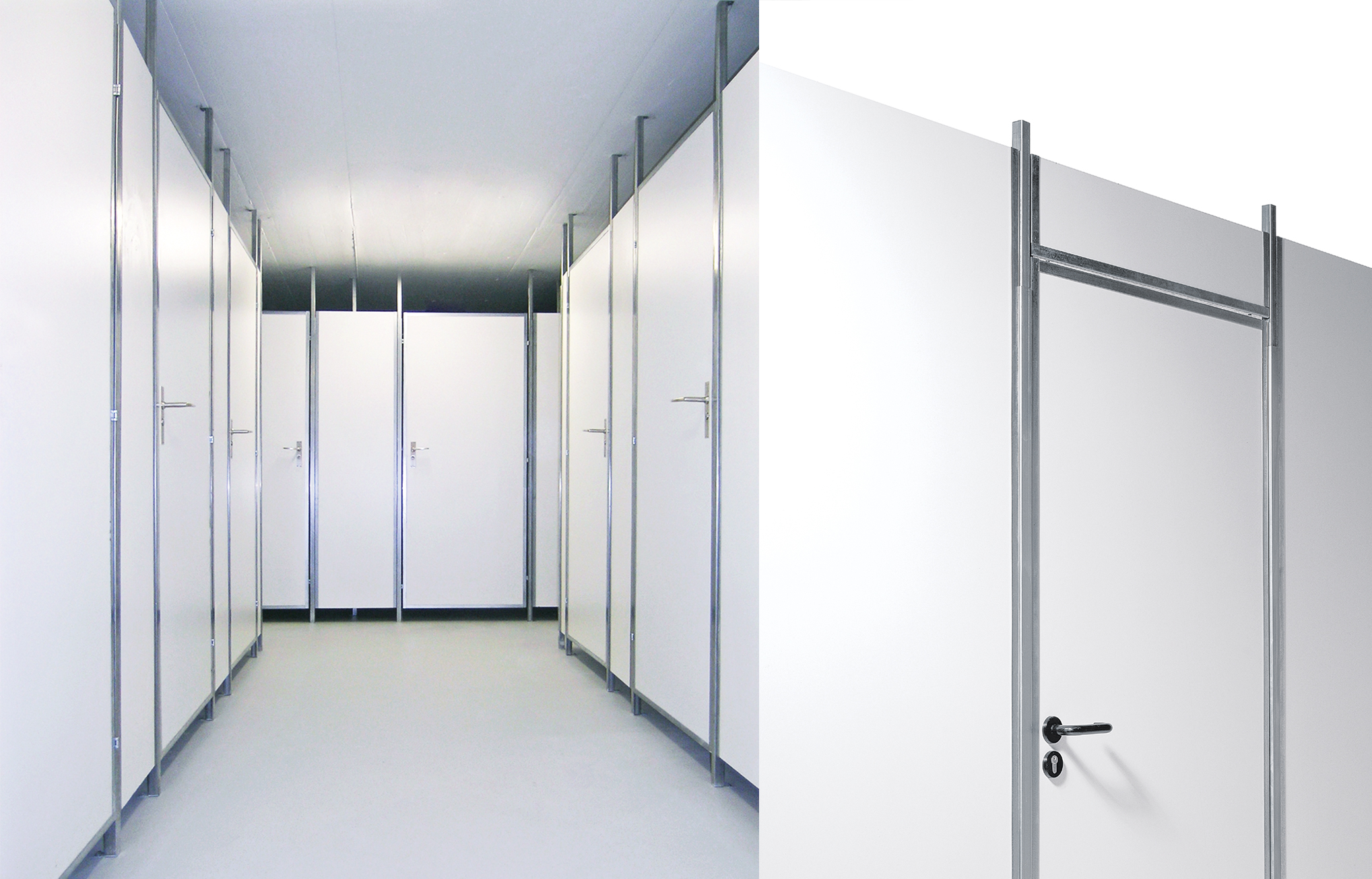Systémové riešenie - Základná konštrukcia z uzavretých štvorcových oceľových profilov pozinkovaných s rôznymi materiálovými výplňami. Veľkou výhodou je možná kombinácia jednotlivých systémov: ľubovoľný výber na predné priečky, vnútorné priečky, dvere a svetlíky nad dverami.