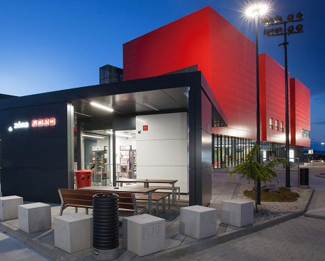 Qbiss One štruktúrne fasádne prvky pozostávajú z dvoch galvanizovaných lakovaných oceľových plechov a izolačnej nehorľavej minerálnej vlny.